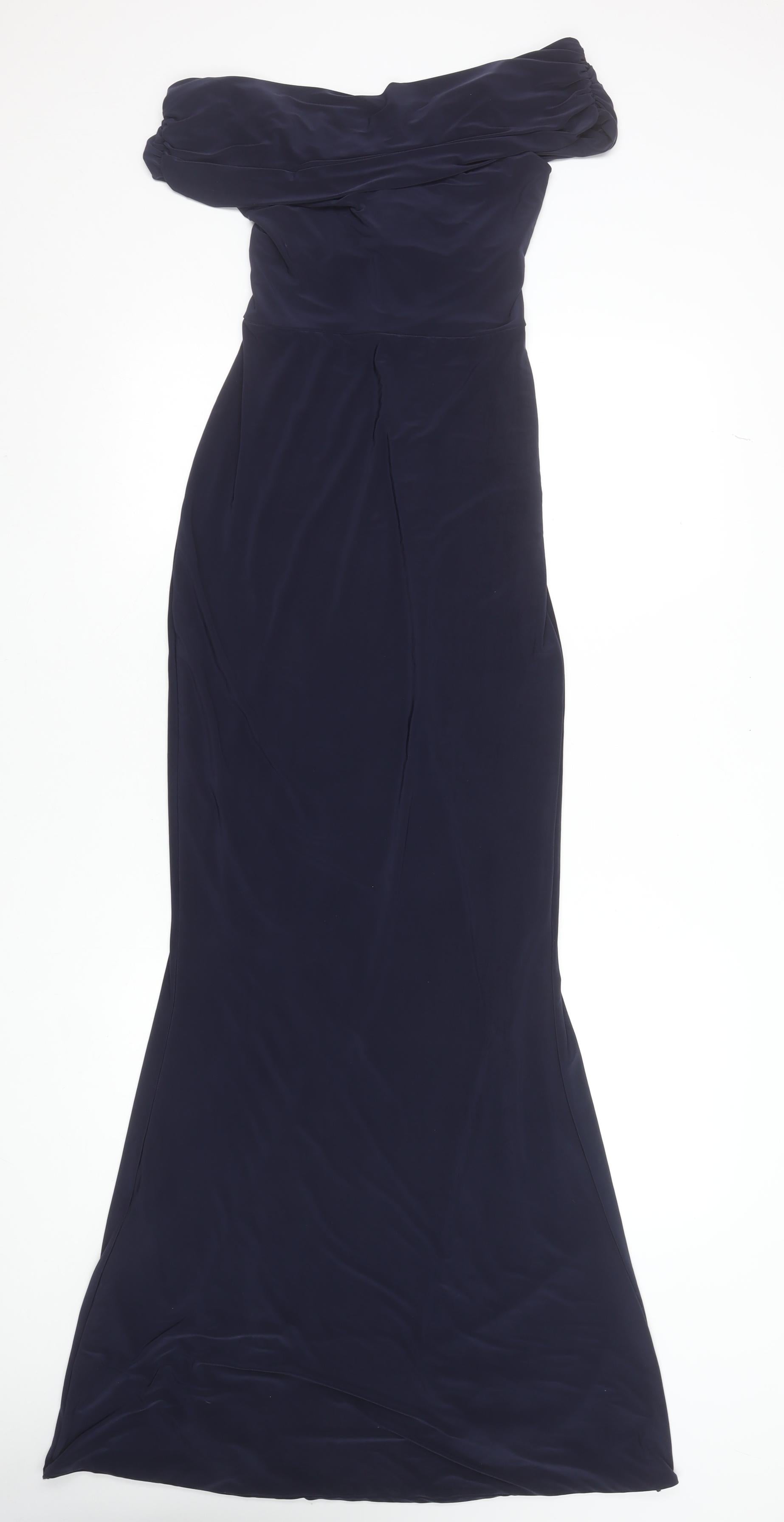 Missguided Women's Navy Blue Off Shoulder Mermaid Maxi Dress Size 10