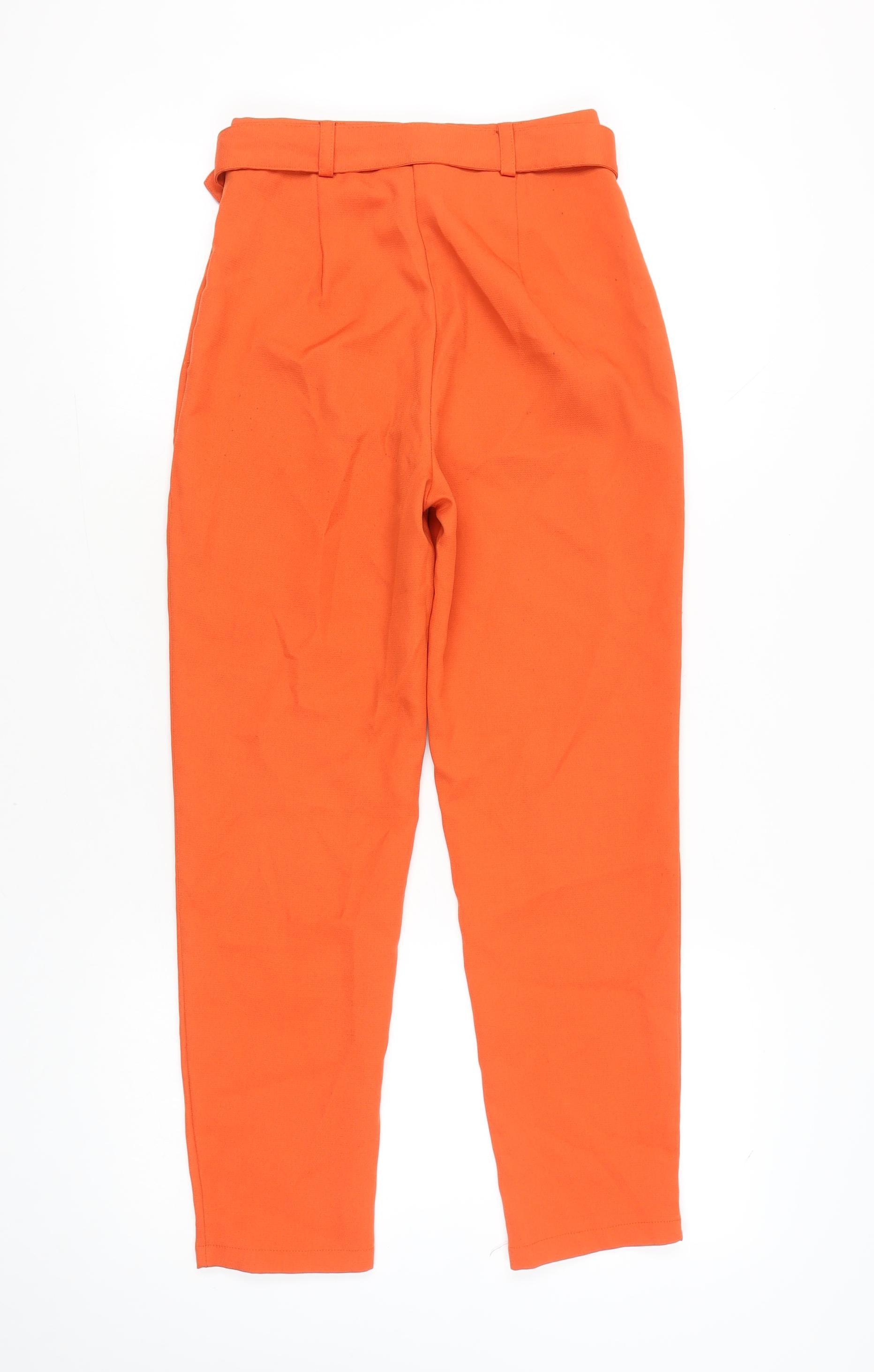 Missguided Women's Orange Paperbag Trousers UK 8 High Waisted Belted Workwear