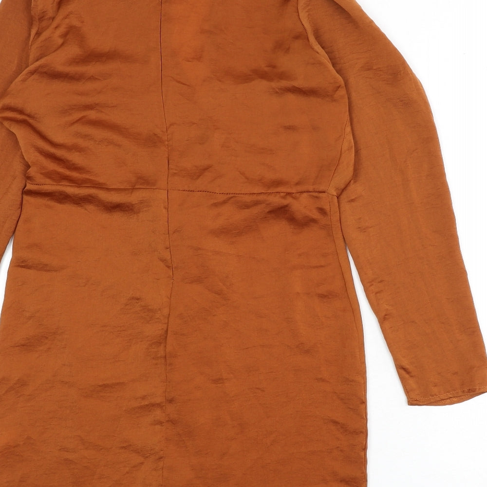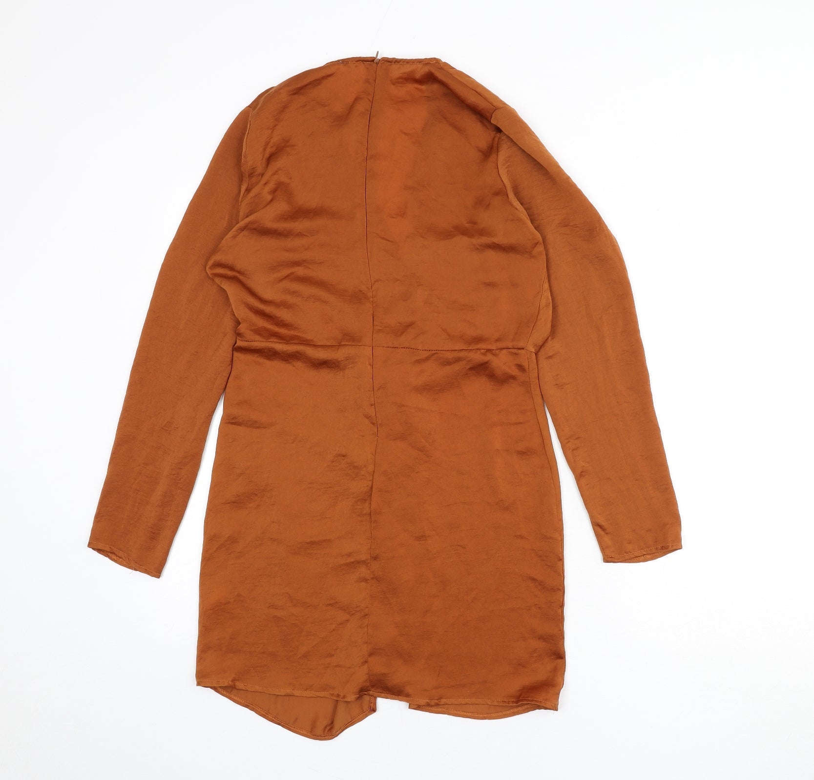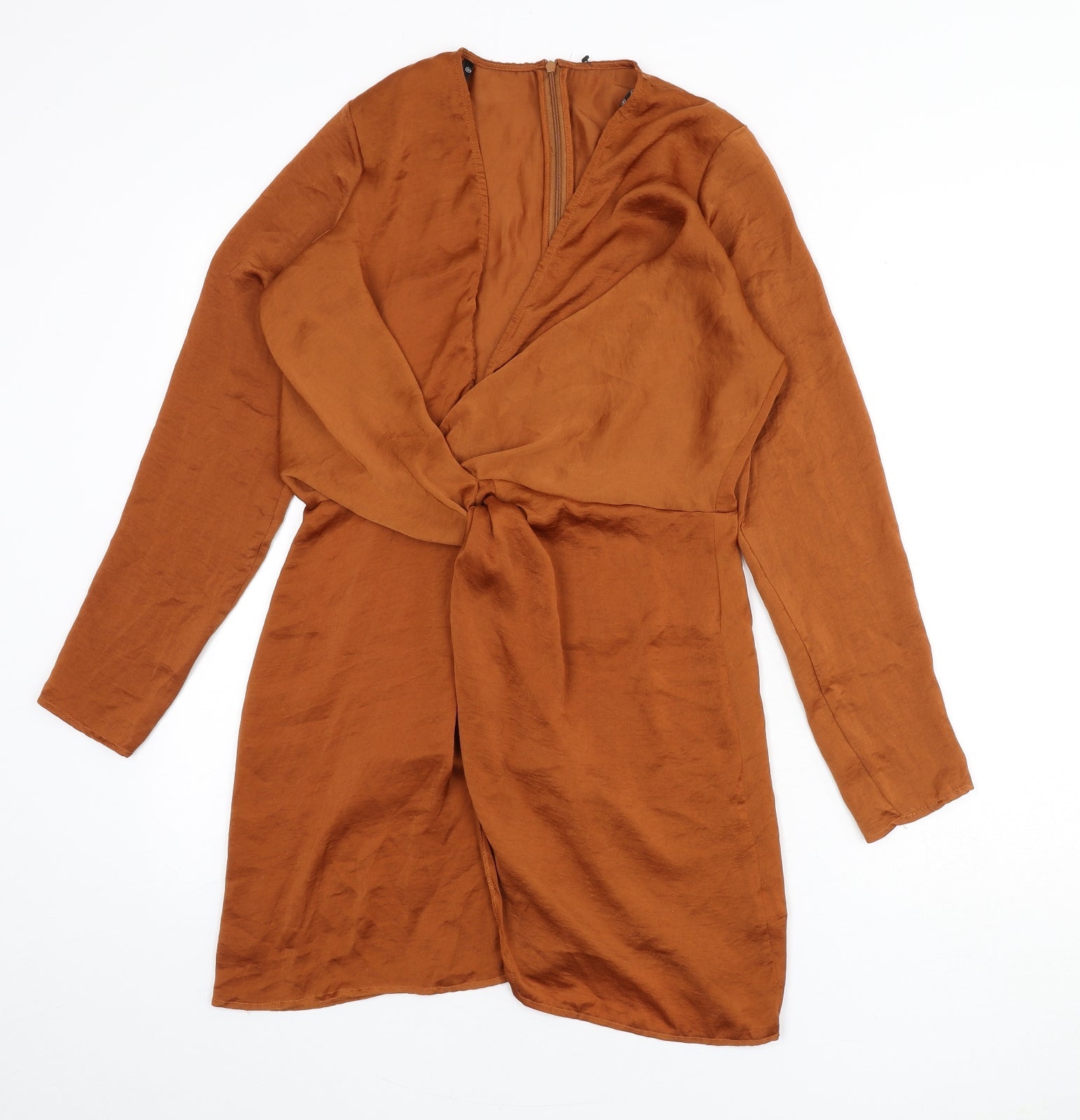 Missguided Womens Orange Polyester Sheath Size 10 V-Neck Zip - Knot Front