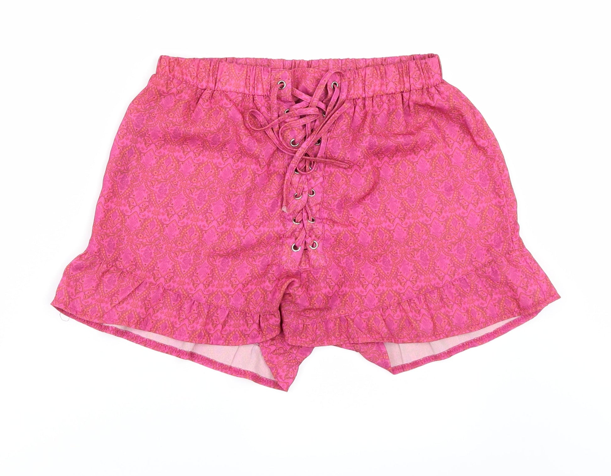 Missguided Womens Pink Geometric Paperbag Shorts Size 8