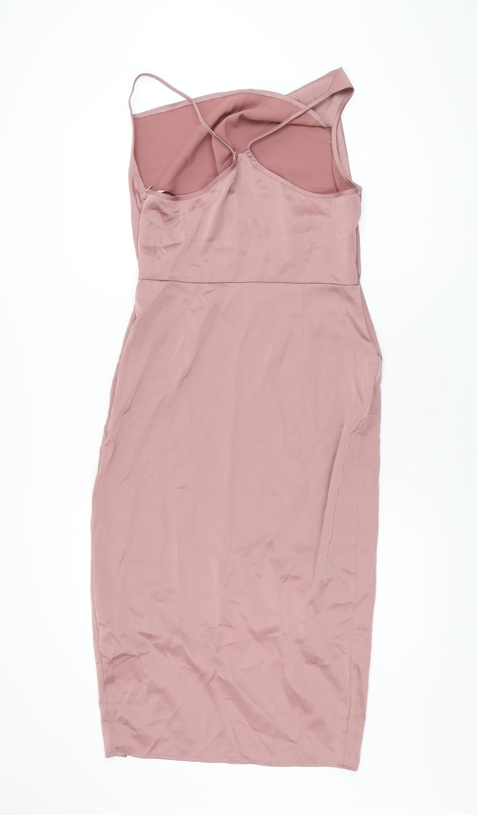 Missguided Womens Pink Polyester Bodycon Size 10 Cowl Neck Zip