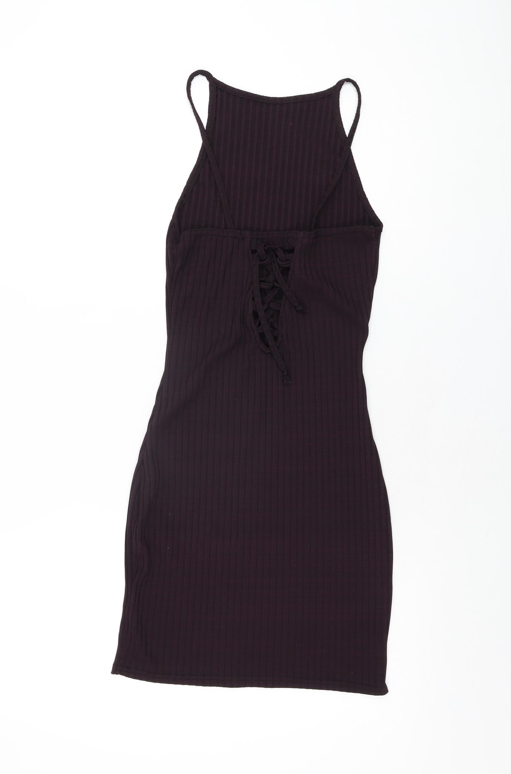 Missguided Womens Purple Polyester Bodycon Size 4 Square Neck Tie