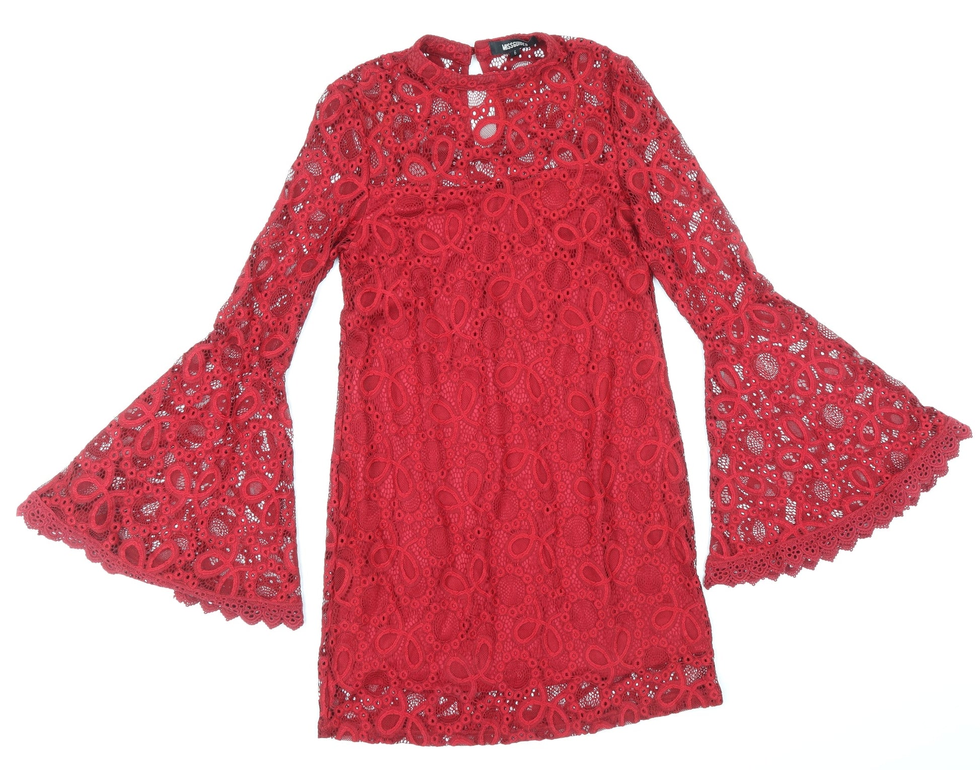 Missguided Womens Red Polyester Mini Size 6 Roll Neck Button - Voluminous Sleeves