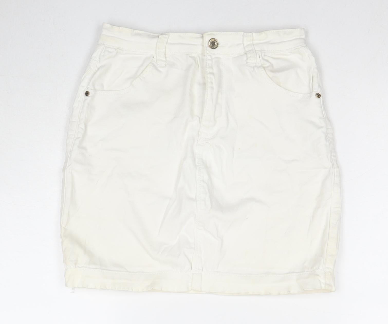 Missguided Womens White Cotton A-Line Skirt Size 10 Zip