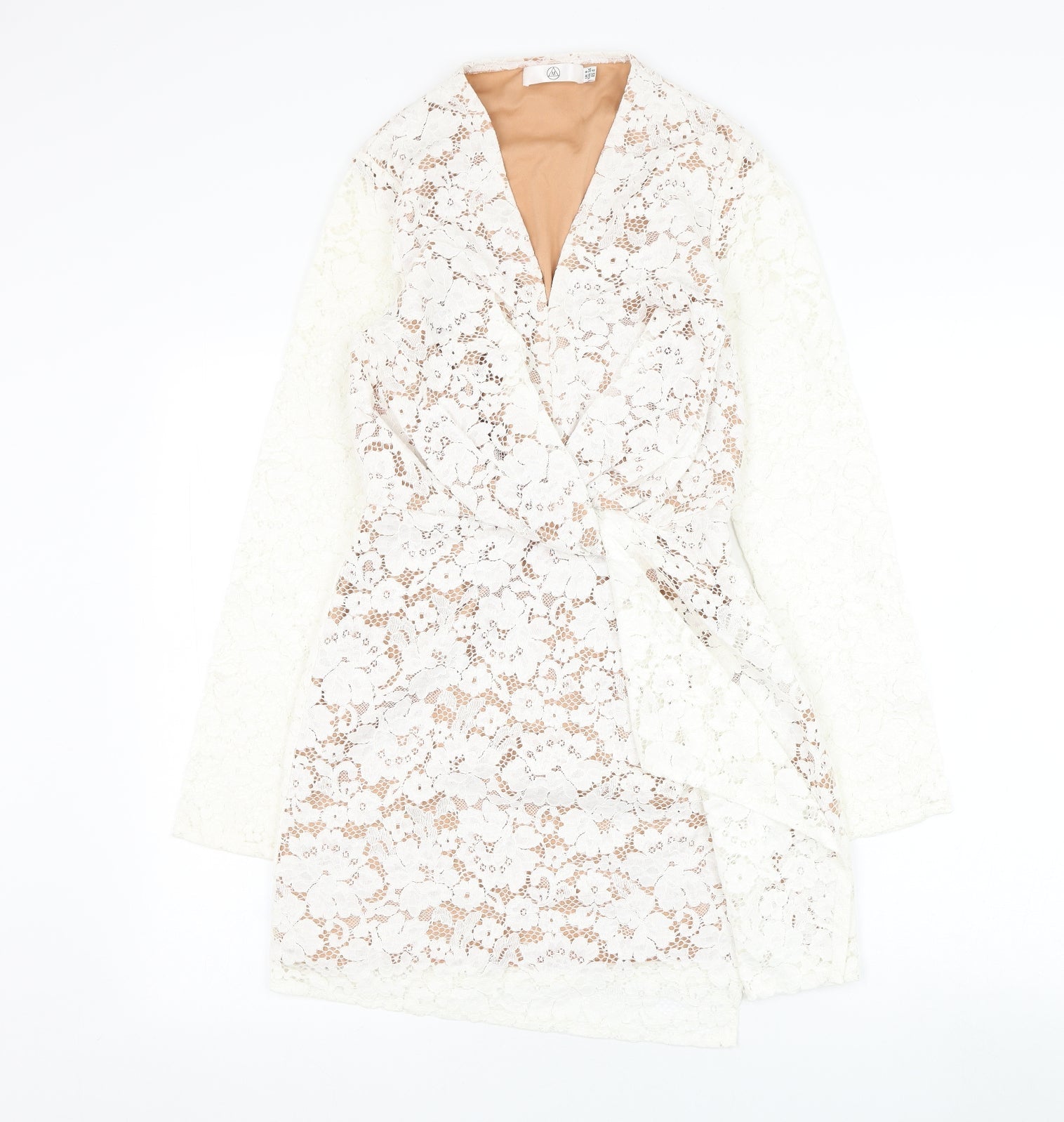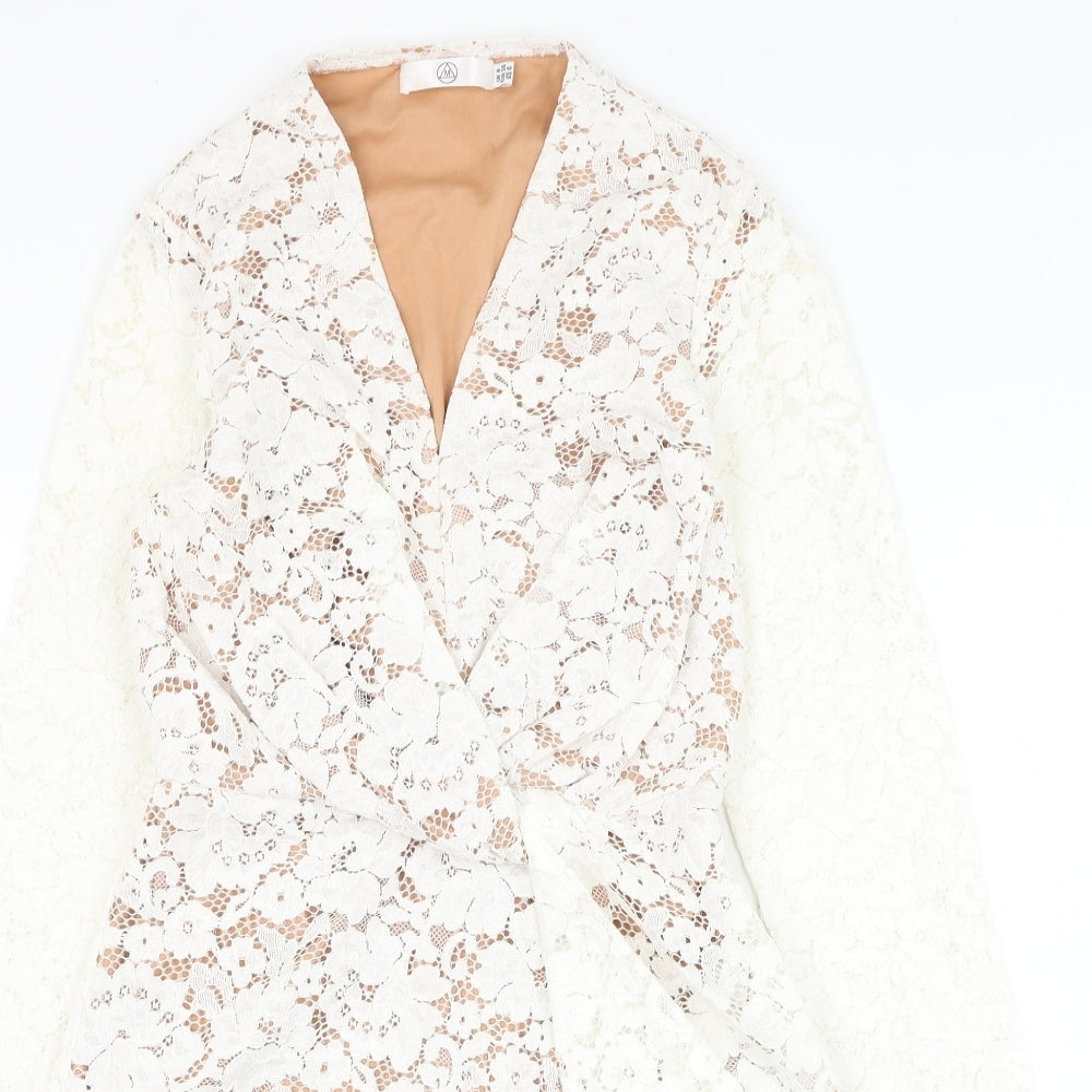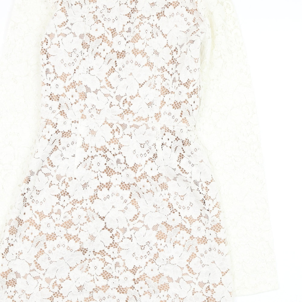 Missguided Womens White Cotton Pencil Dress Size 8 V-Neck Zip