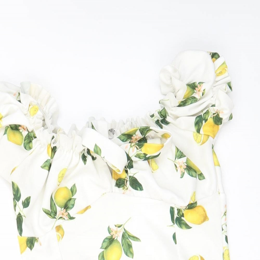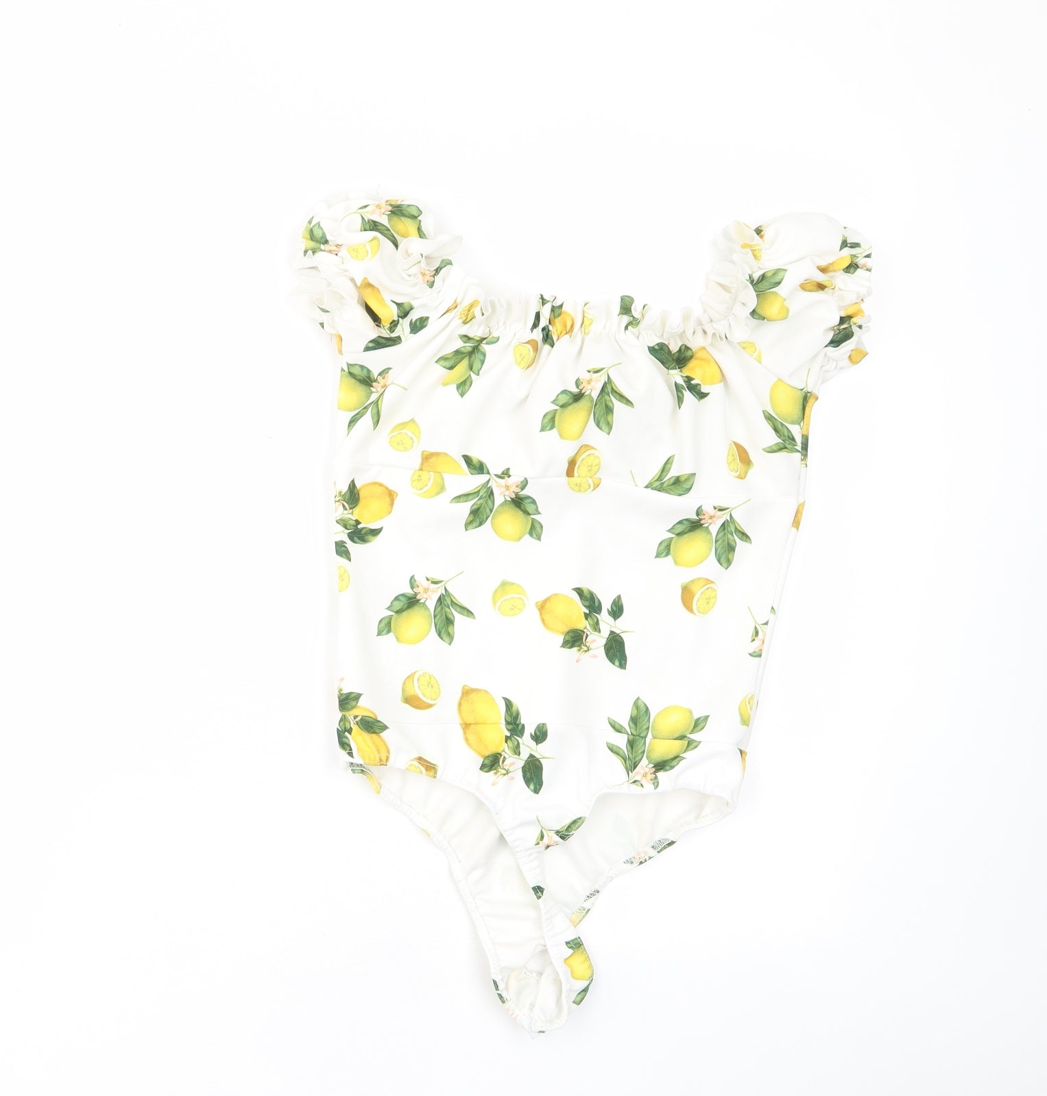 Missguided Womens White Geometric Polyester Bodysuit One-Piece Size 10 Snap - Frill