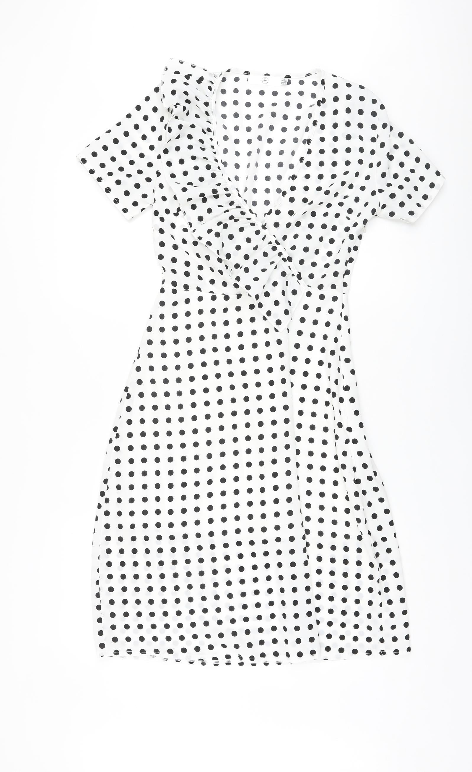 Missguided Womens White Polka Dot Polyester A-Line Size 8 V-Neck Zip
