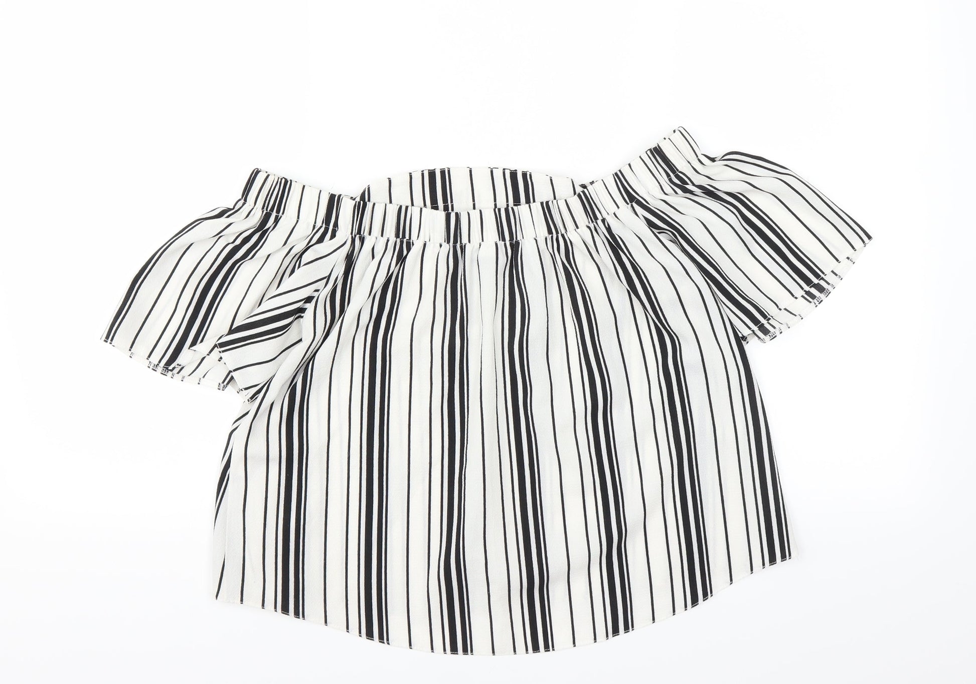 Missguided Womens White Striped Basic Blouse Size 10 - CROPPED