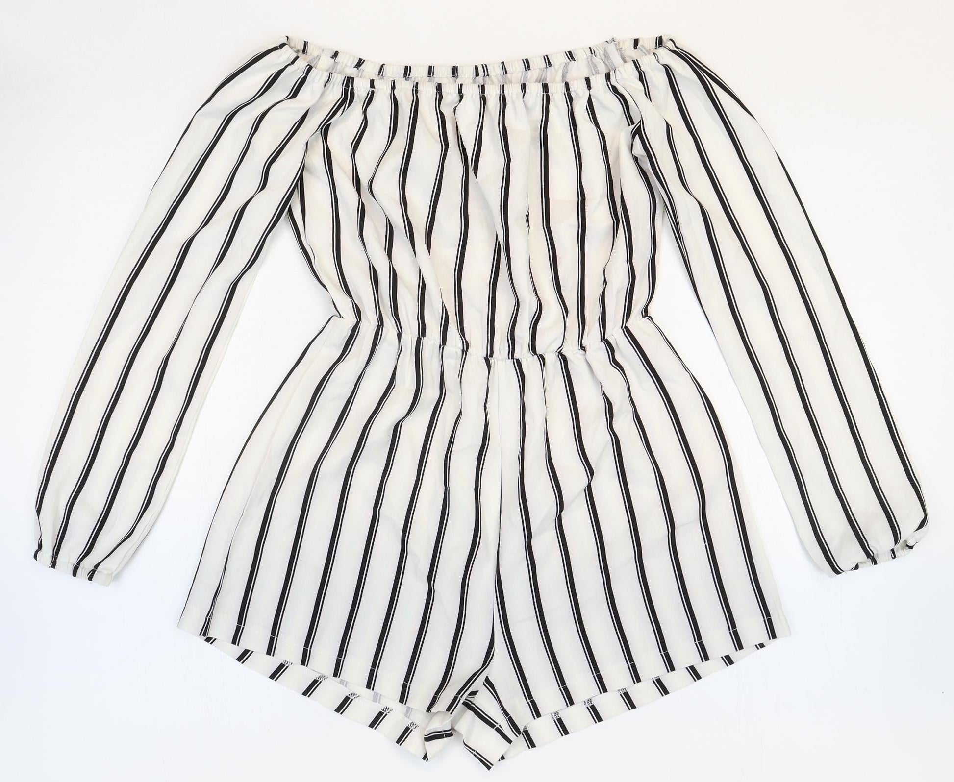 Missguided Womens White Striped Patent Leather Playsuit One-Piece Size 6 Pullover