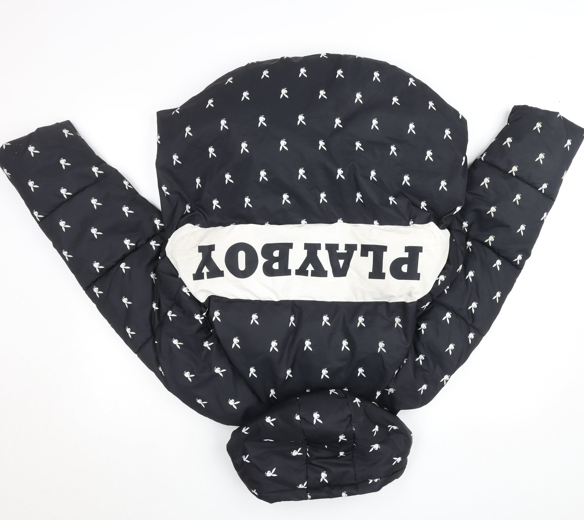 Missguided x Playboy Women’s Black Hooded Puffer Jacket Size 10