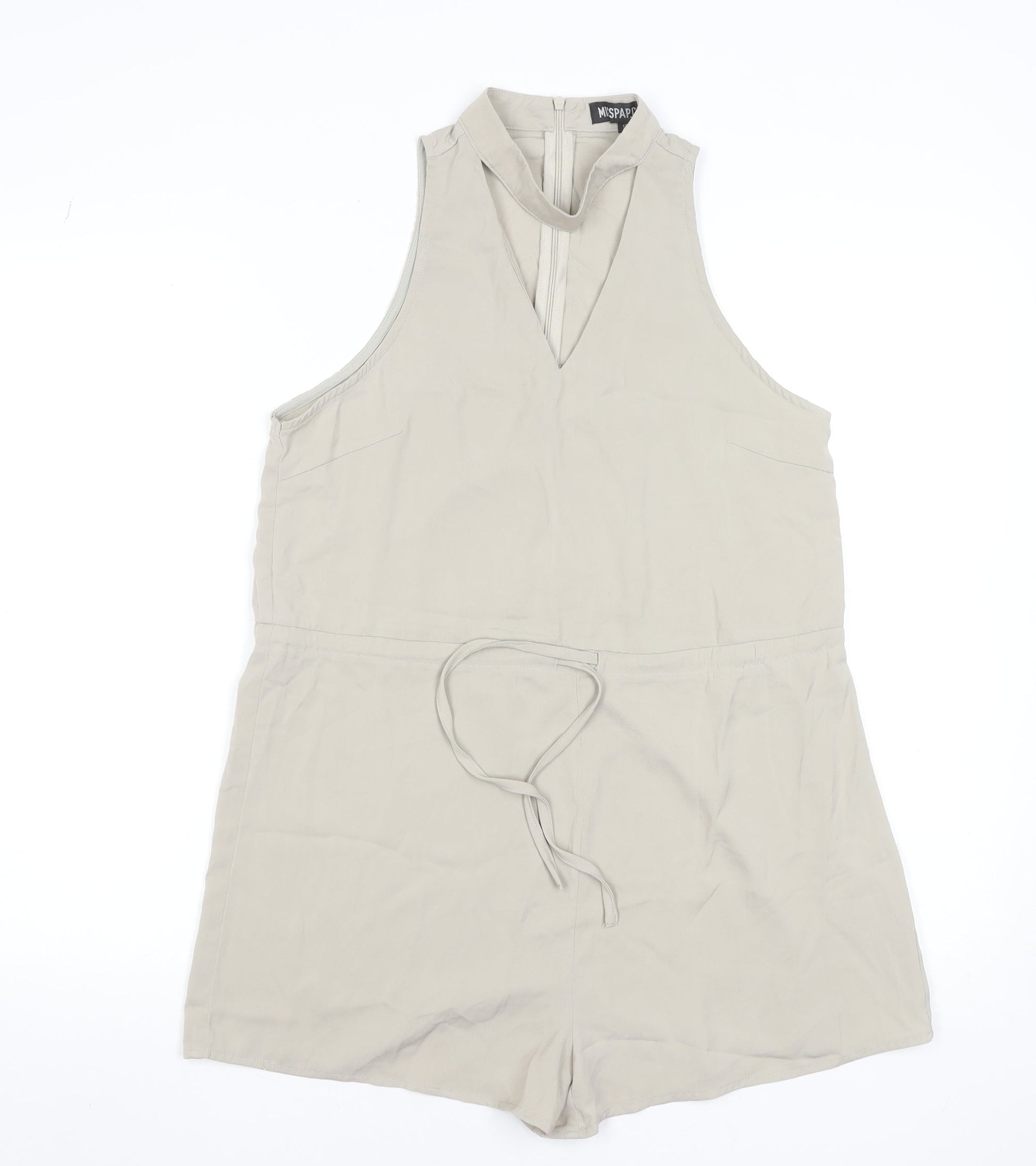 MissPap Women Beige Sleeveless Playsuit Size 10 Polyester Zip Back