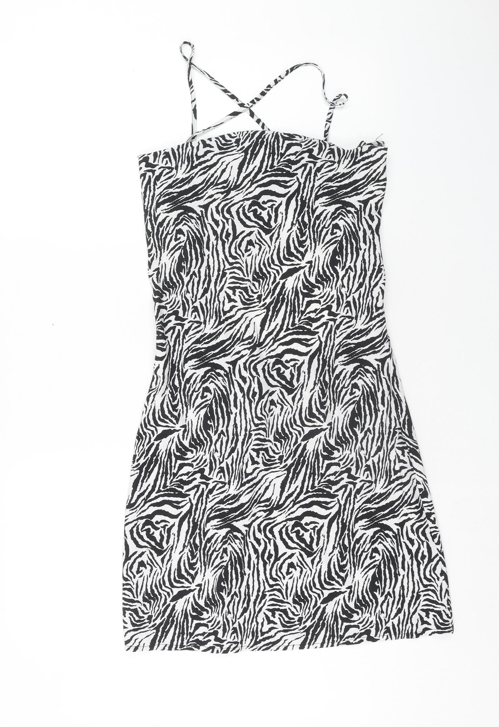 Misspap Womens Multicoloured Animal Print Polyester Tank Dress Size 10 Scoop Neck Zip