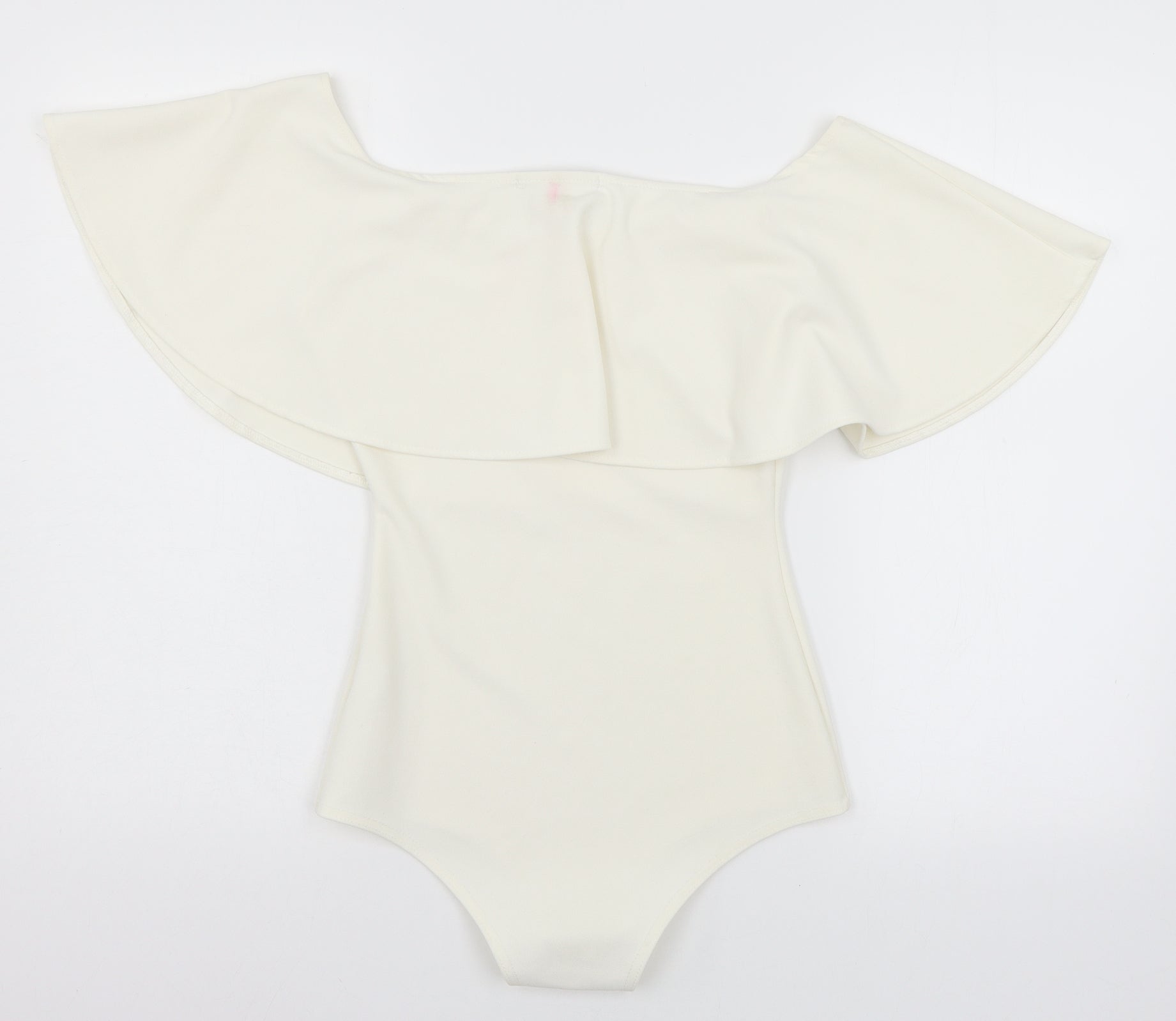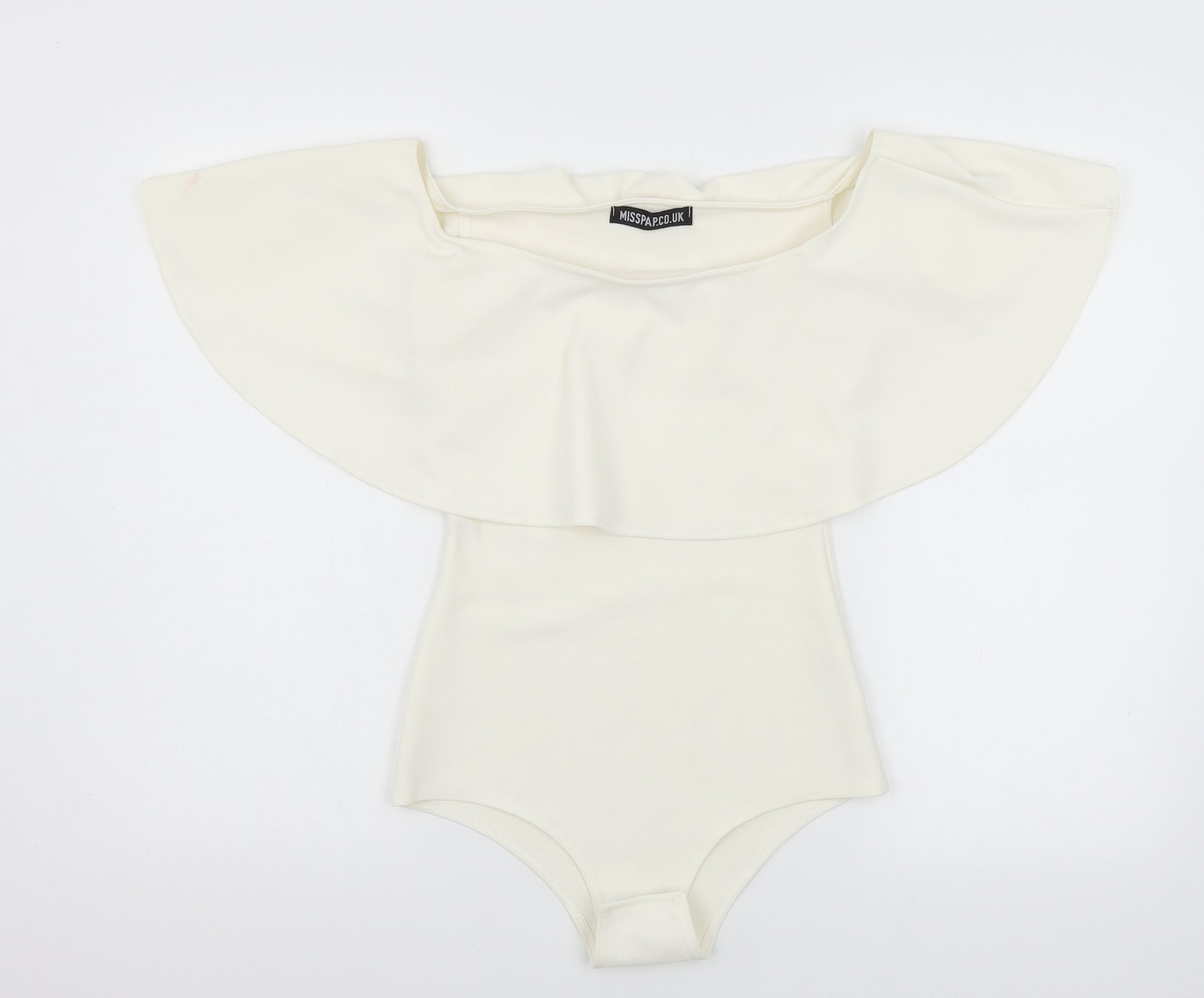 Misspap Womens White Jersey Bodysuit One-Piece Size 8