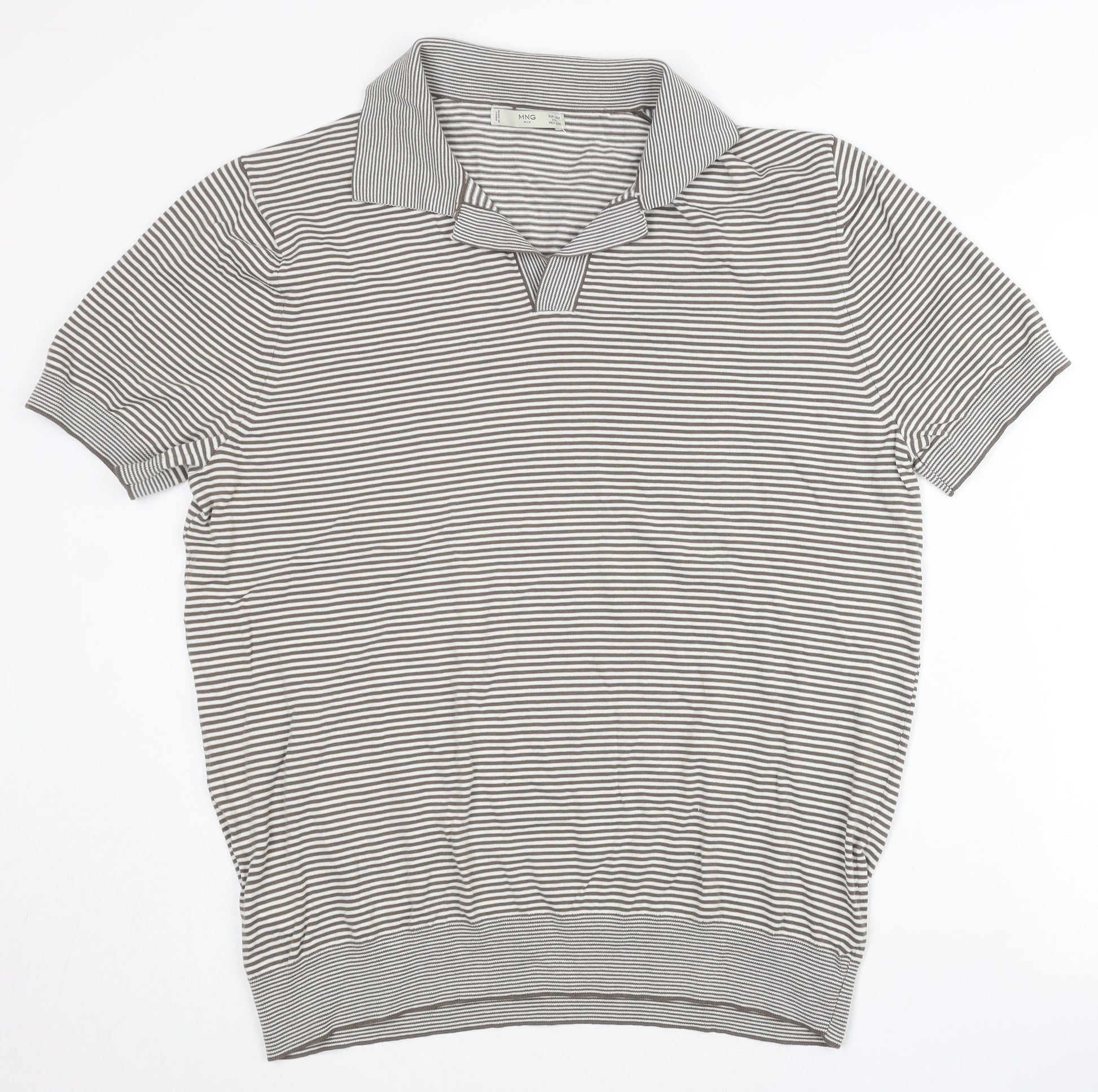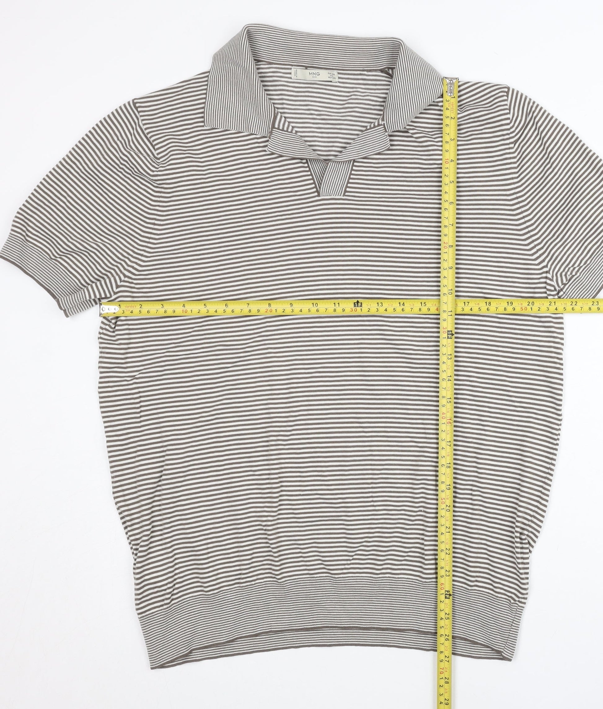 MNG Men Grey Striped 2XL Polo Shirt Cotton Blend Short Sleeve