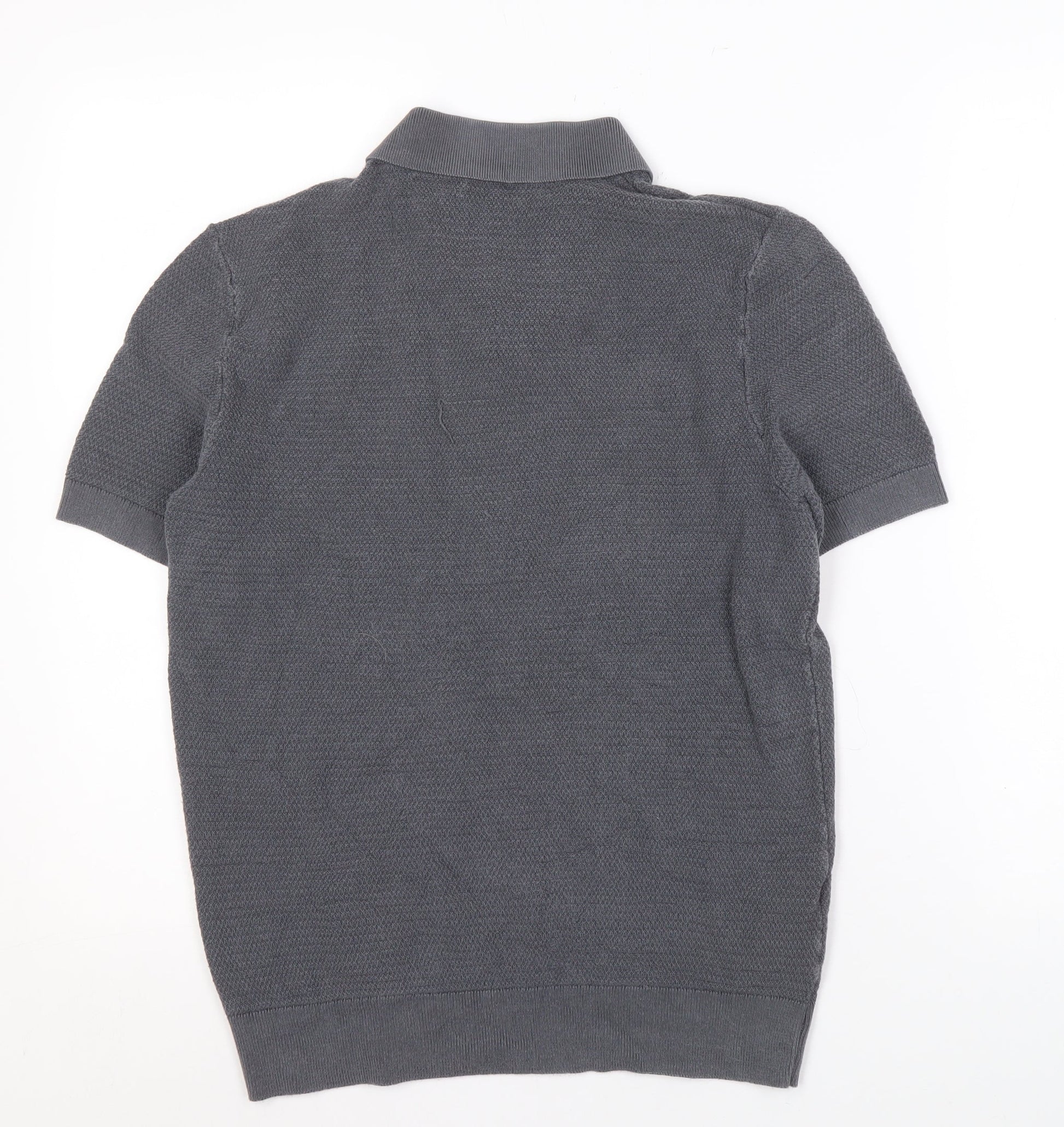 MNG Men's Grey Short Sleeve Polo M Knit Casual