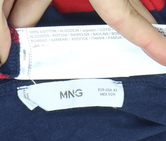 MNG Women Navy Red Striped 3/4 Sleeve Cotton Boat Neck Top Size S