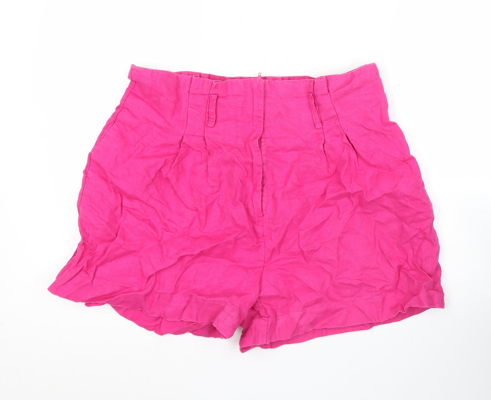 MNG Women’s Pink XL Paperbag Linen High Waisted Shorts