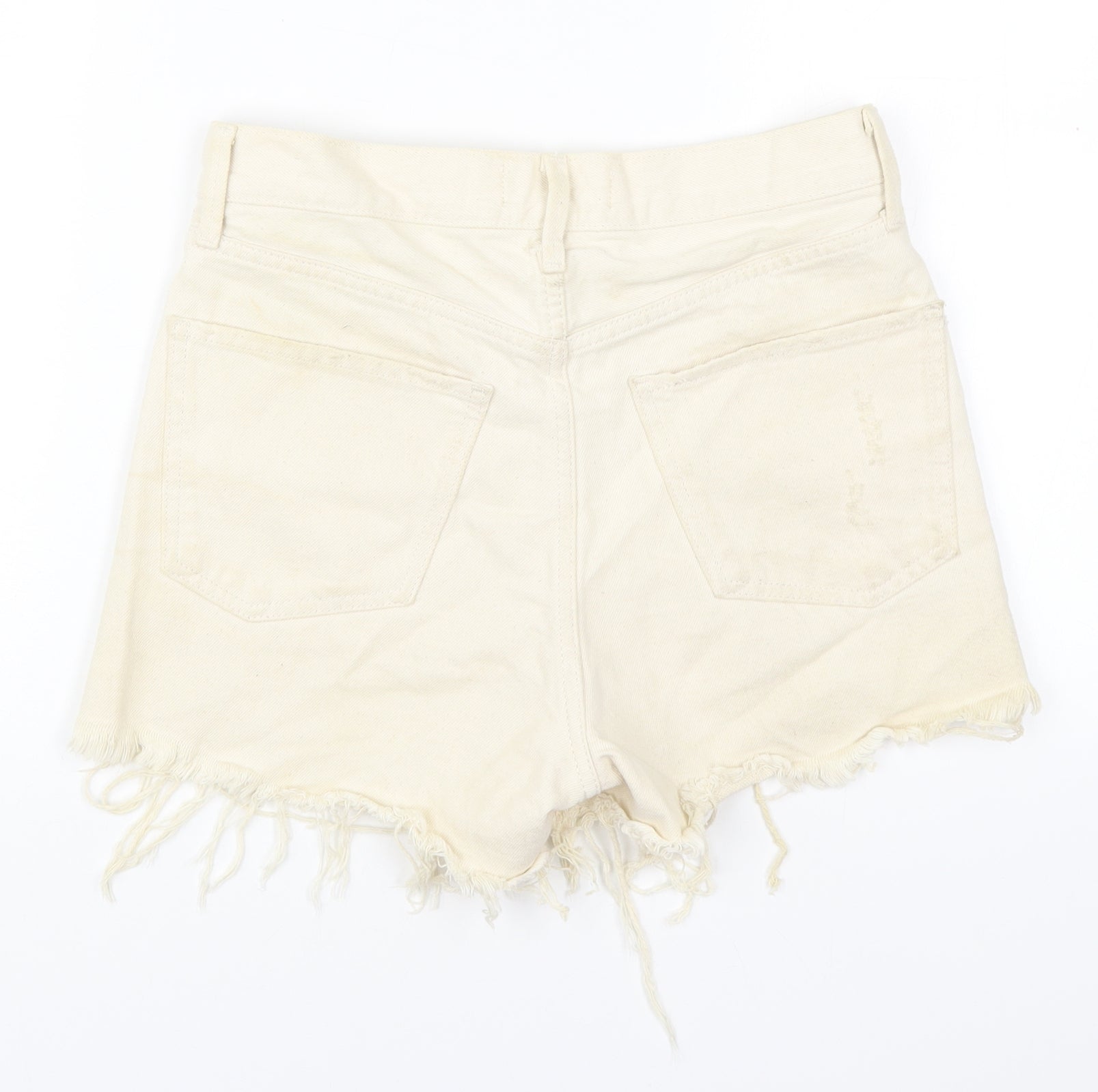 MNG Womens Beige Cotton Cut-Off Shorts Size 6 Regular Button