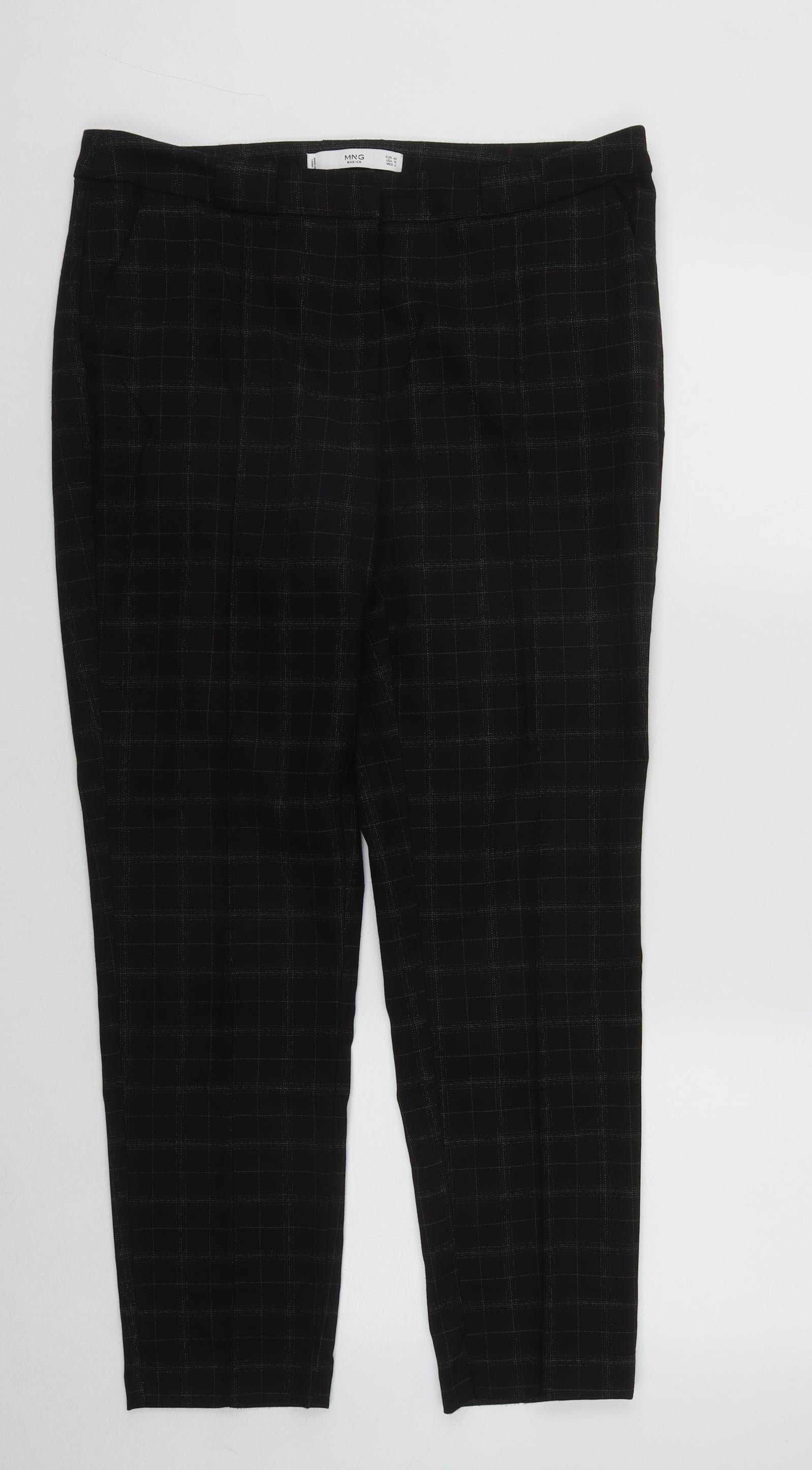 MNG Womens Black Plaid Polyester Trousers Size 14 L27 in Regular Zip
