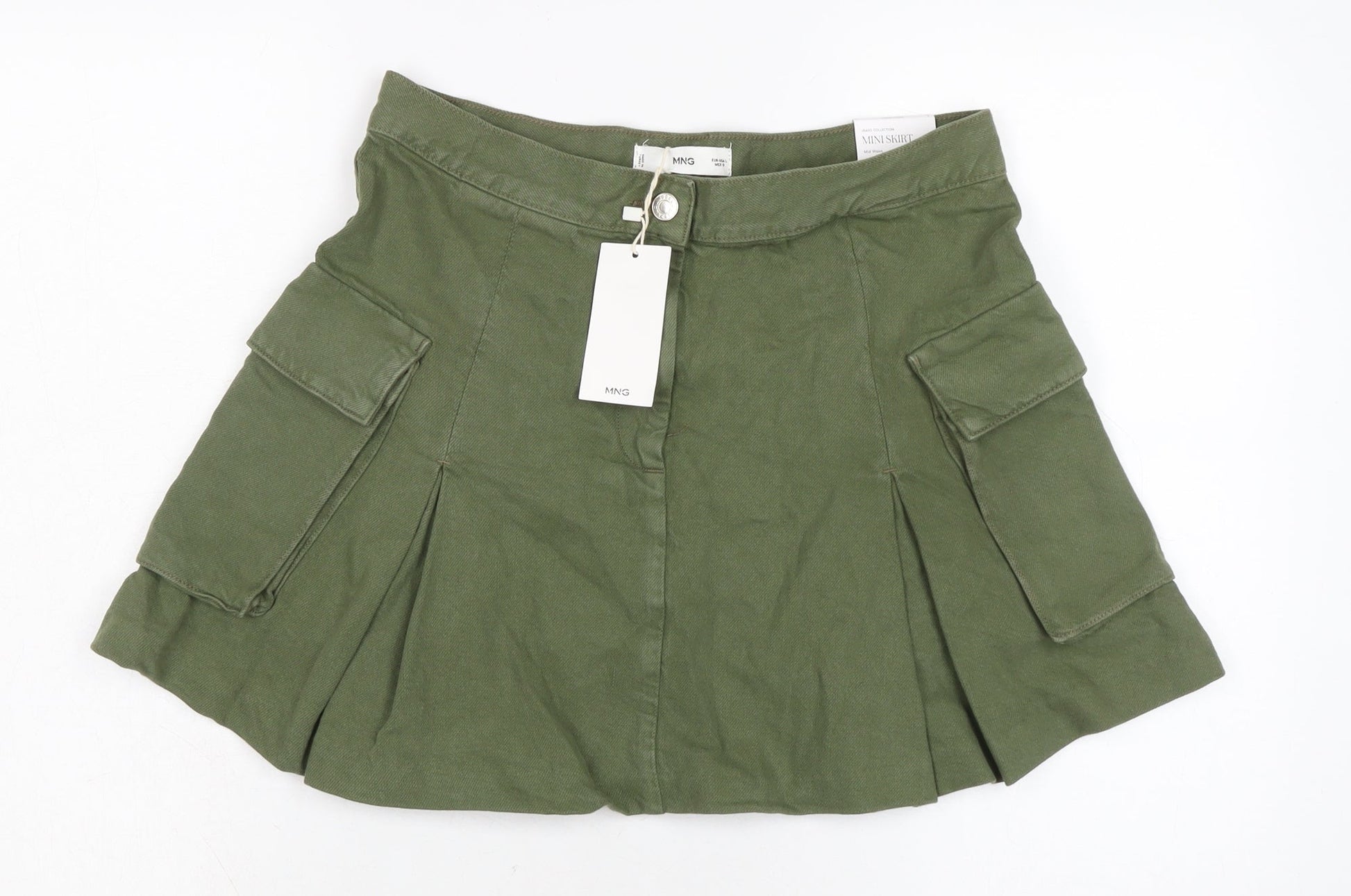 MNG Womens Green Cotton Flare Skirt Size 8 Zip