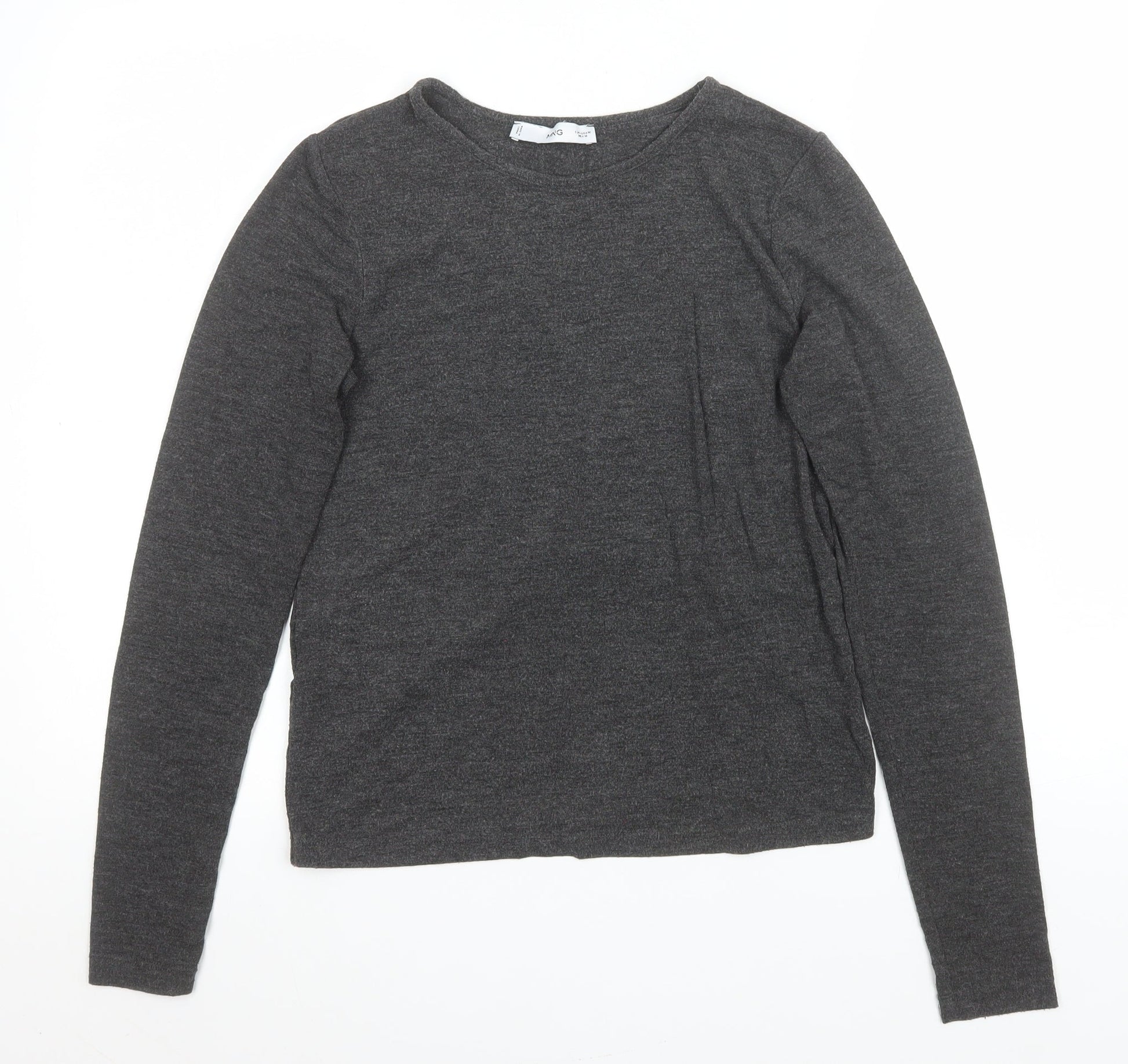MNG Womens Grey Long Sleeve Basic Crew Neck Jersey Top Size M