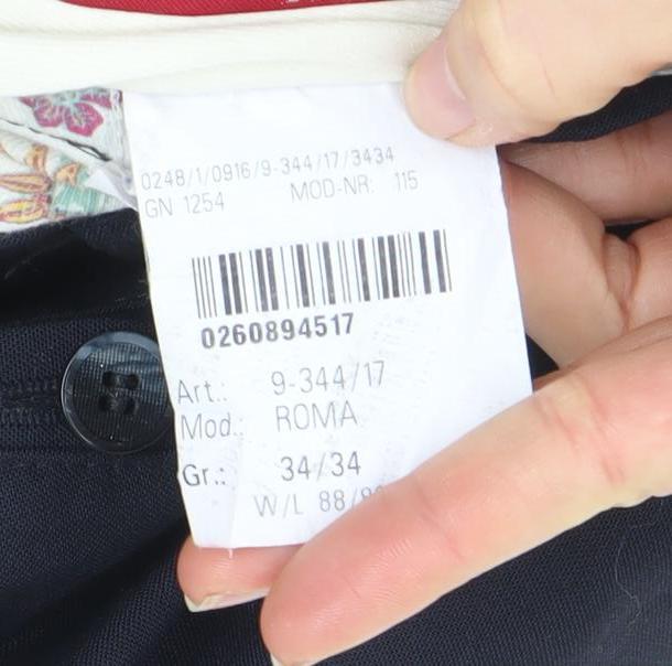 Modern Comfort Men’s Black Regular Fit Wool Blend Dress Trousers 34W 34L