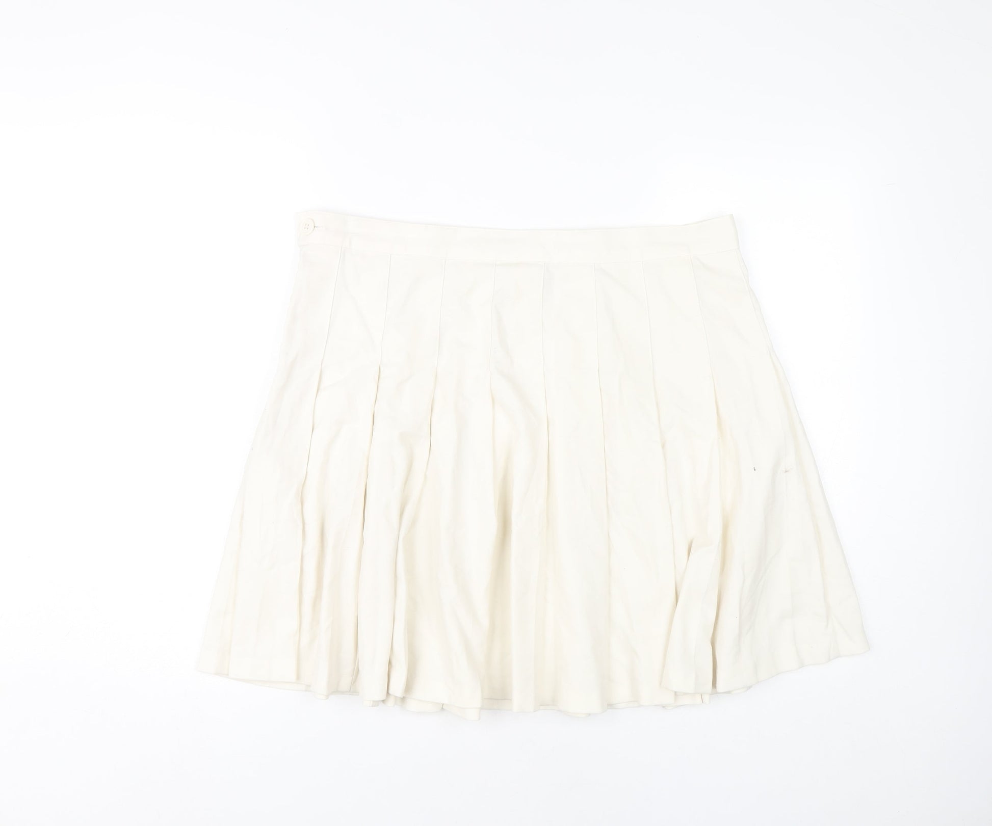 Monki Women Ivory Knee Length Pleated Skirt Size 18 Cotton Lined