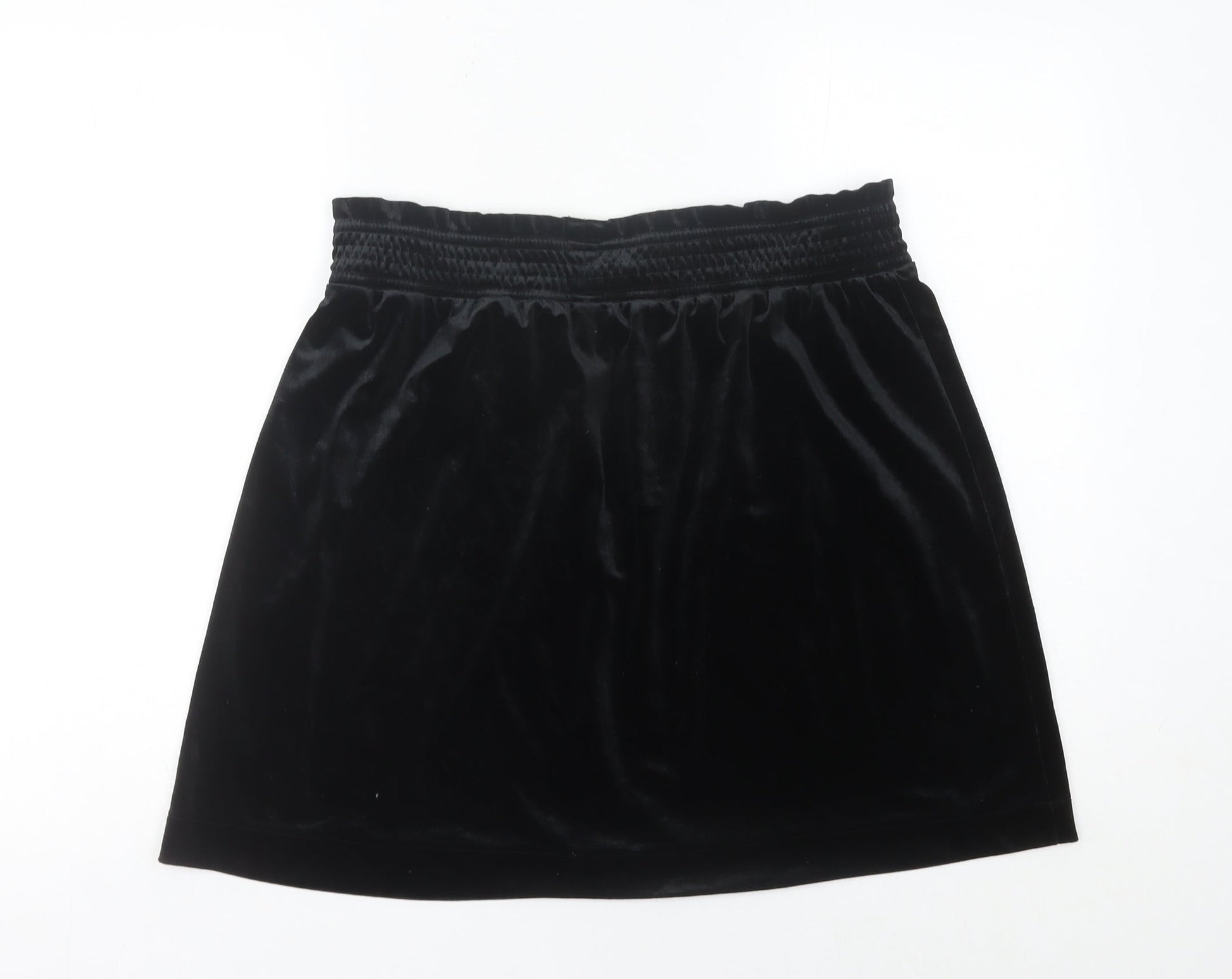 Monki Women’s Black Velvet Short Skirt L High Rise Elastic Waist