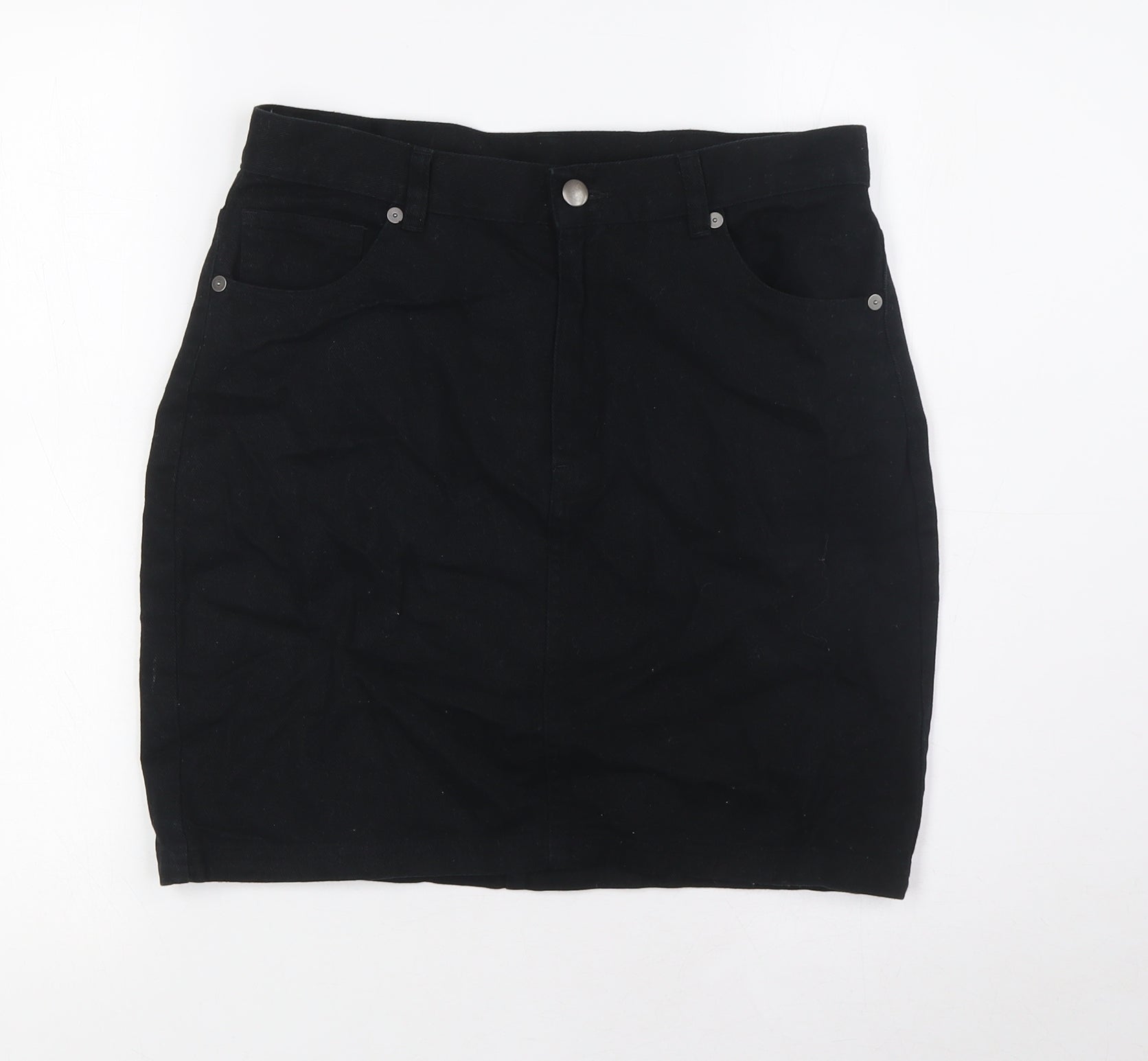 Monki Womens Black Cotton A-Line Skirt Size S Zip