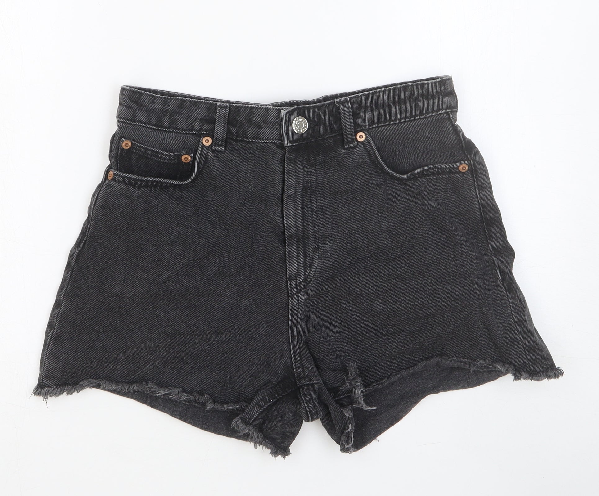 Monki Womens Black Cotton Boyfriend Shorts Size 28 in Slim Button