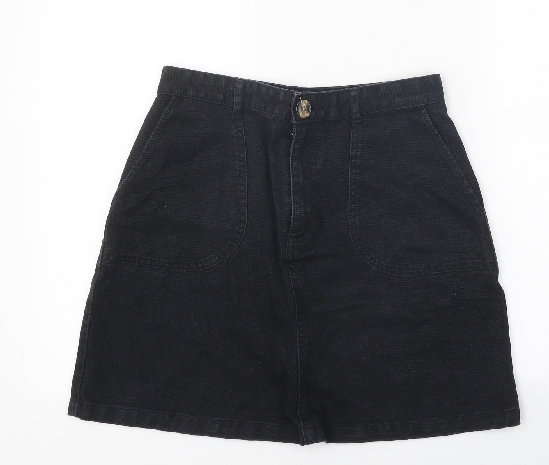 Monki Womens Black Cotton Mini Skirt Size 28 in Zip