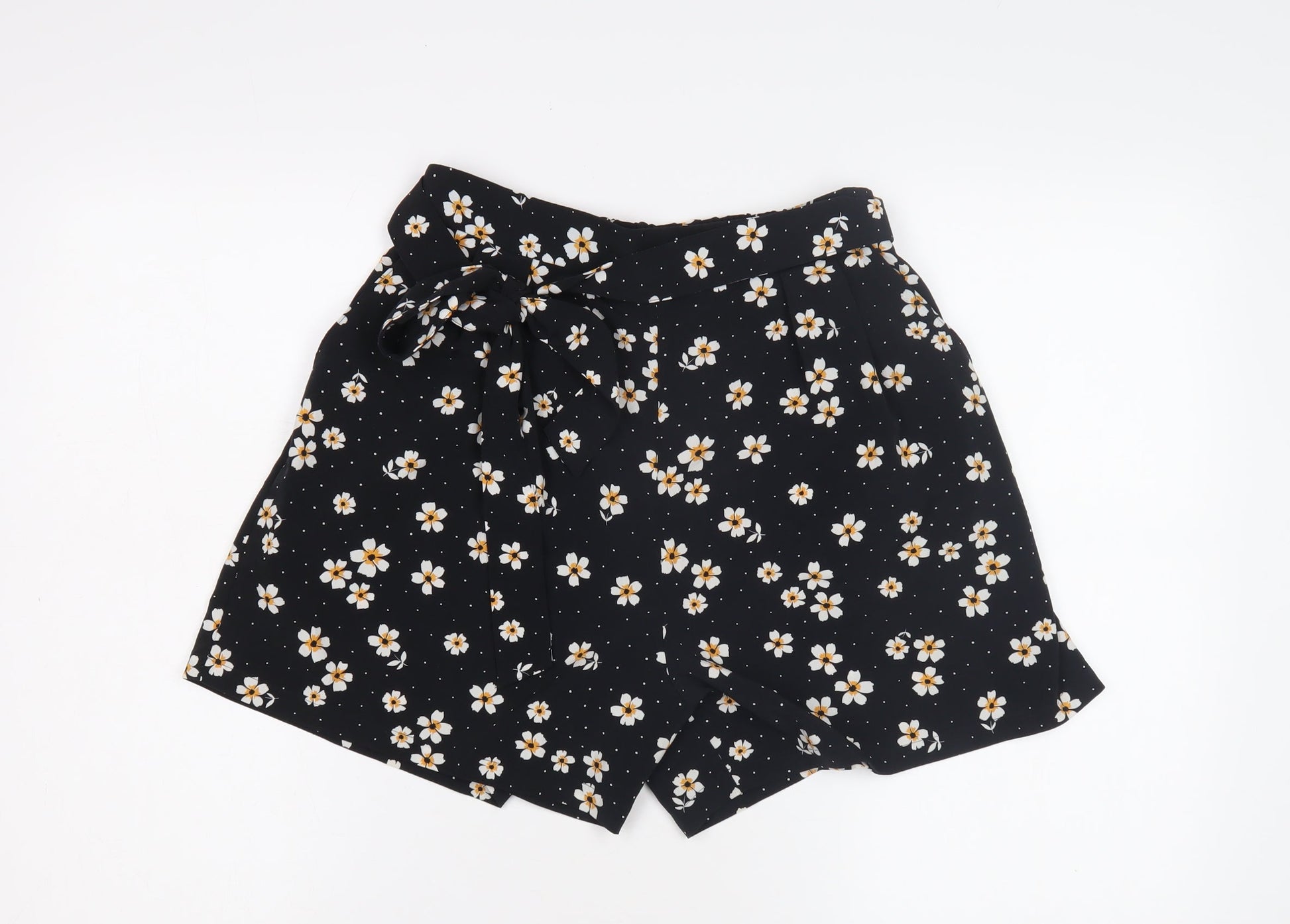 Monki Women's Black Floral Paperbag Shorts - Size S