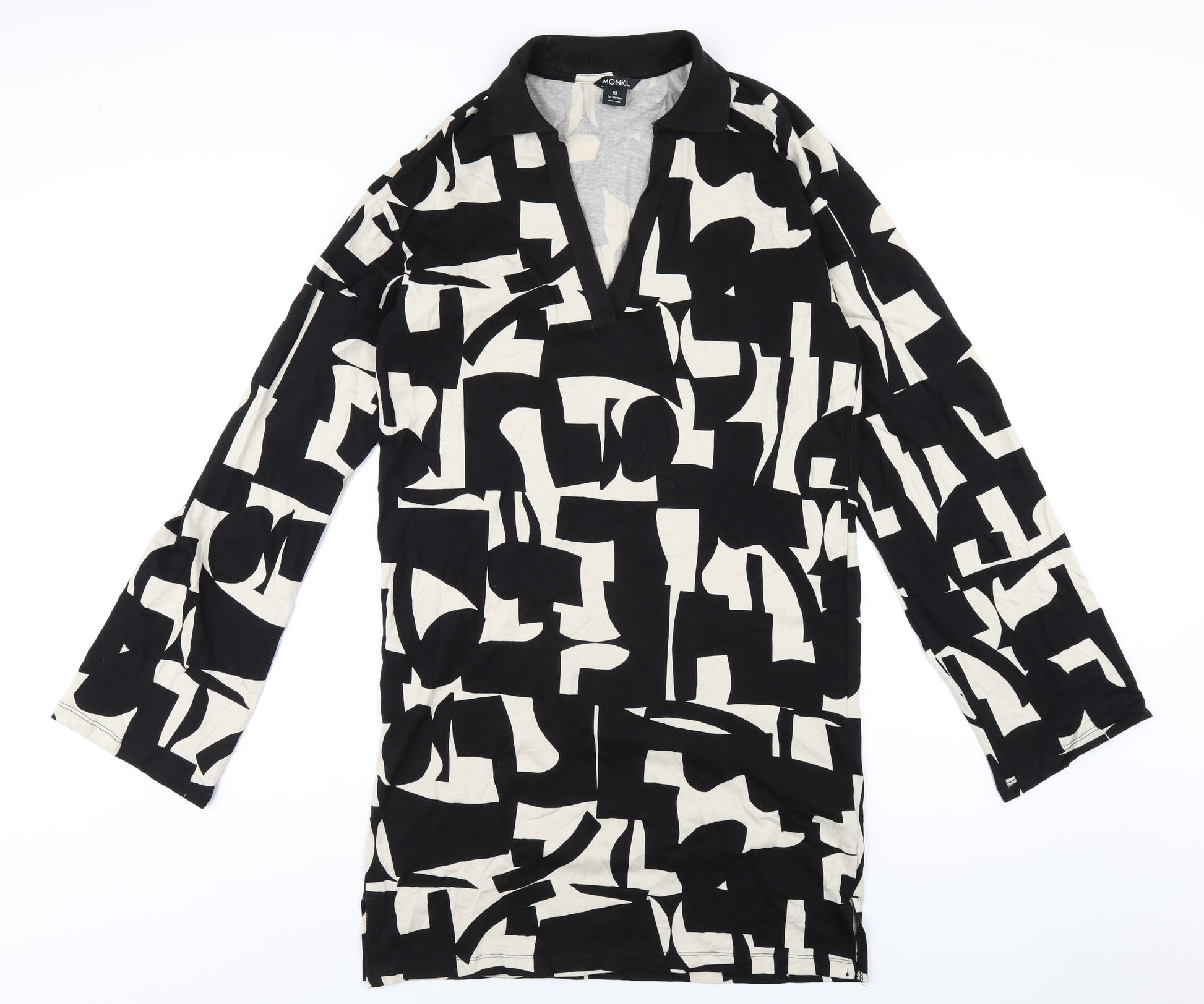 Monki Womens Black Geometric Cotton A-Line Size XS V-Neck Pullover