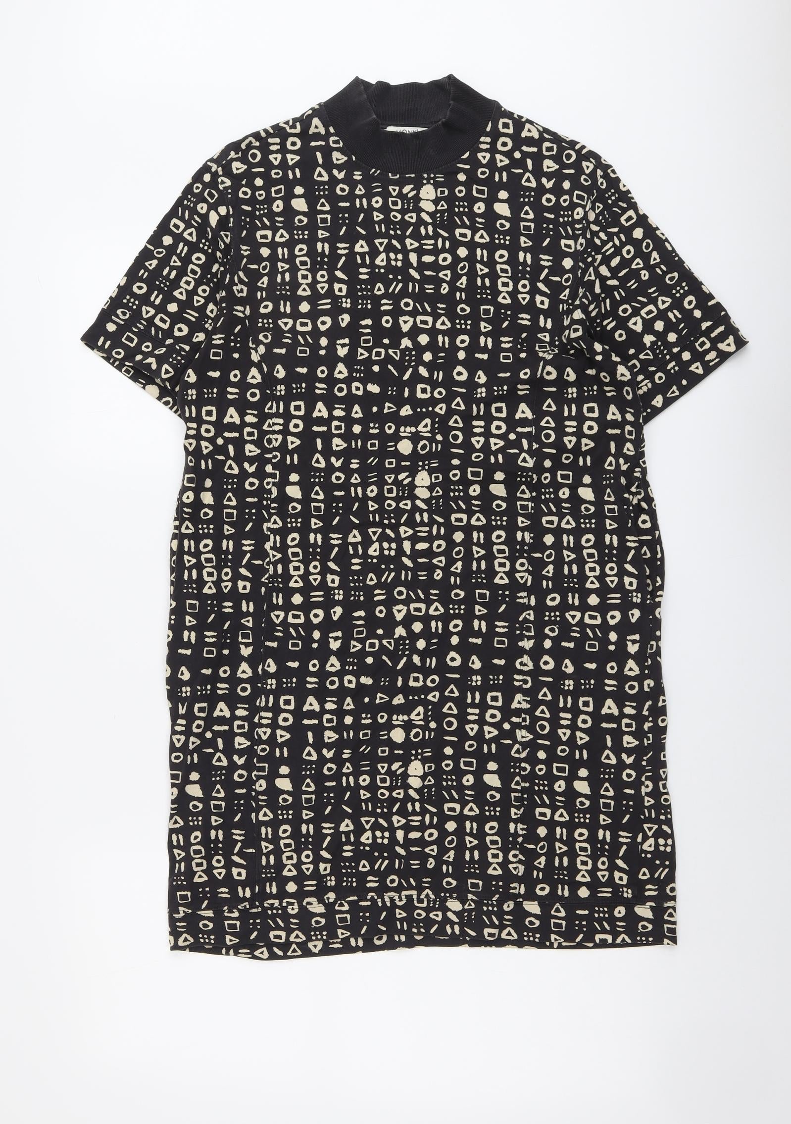 Monki Womens Black Geometric Cotton Shift Size S Round Neck Pullover
