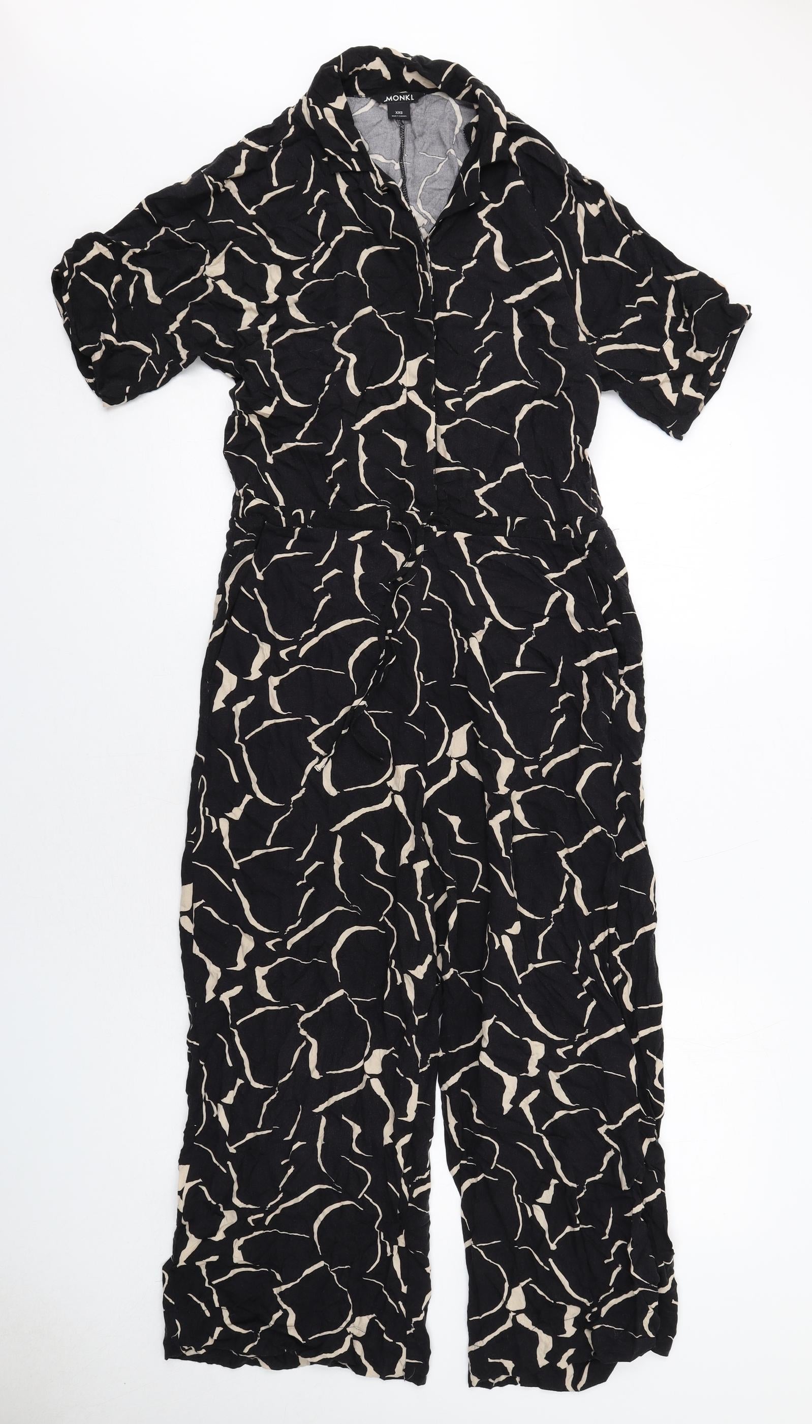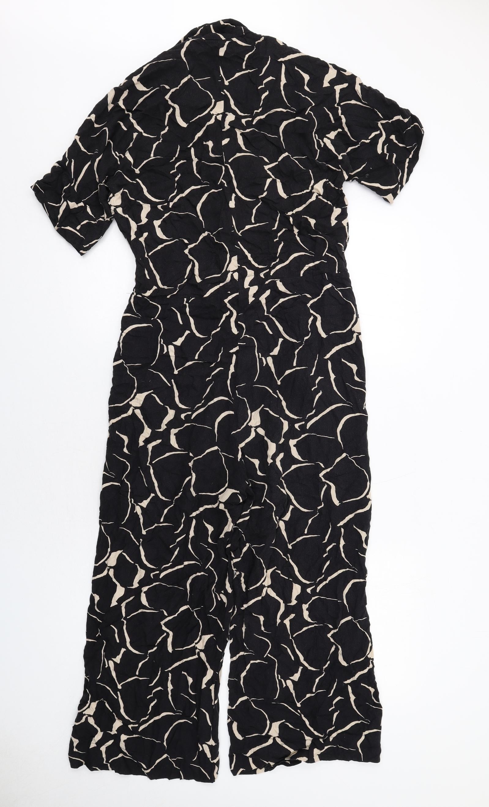 Monki Womens Black Geometric Viscose Jumpsuit One-Piece Size 2XS Button