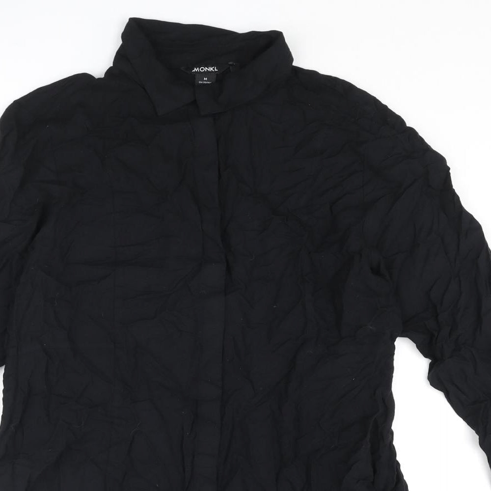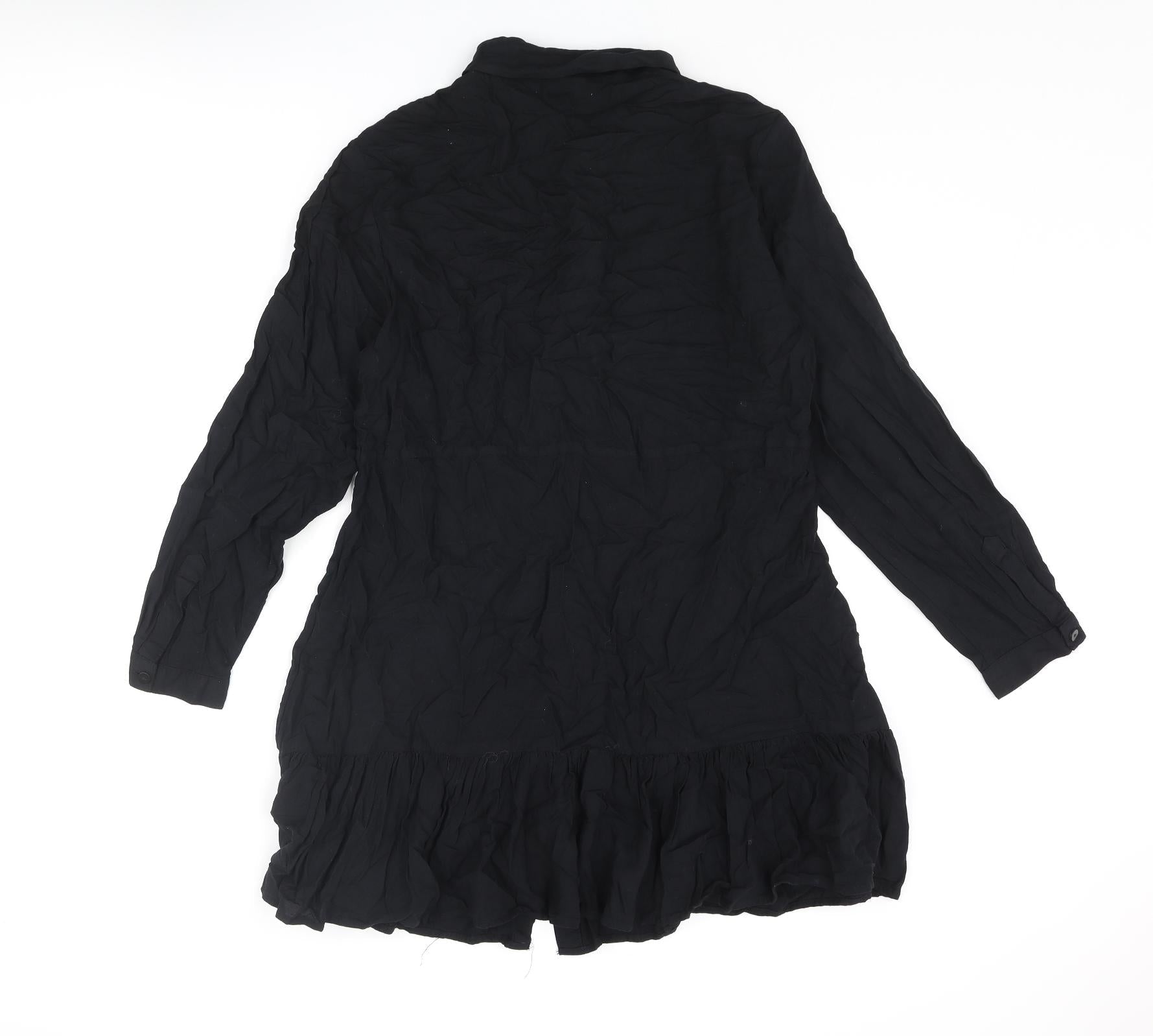 Monki Womens Black Viscose Shirt Dress Size M Collared Button - Frill