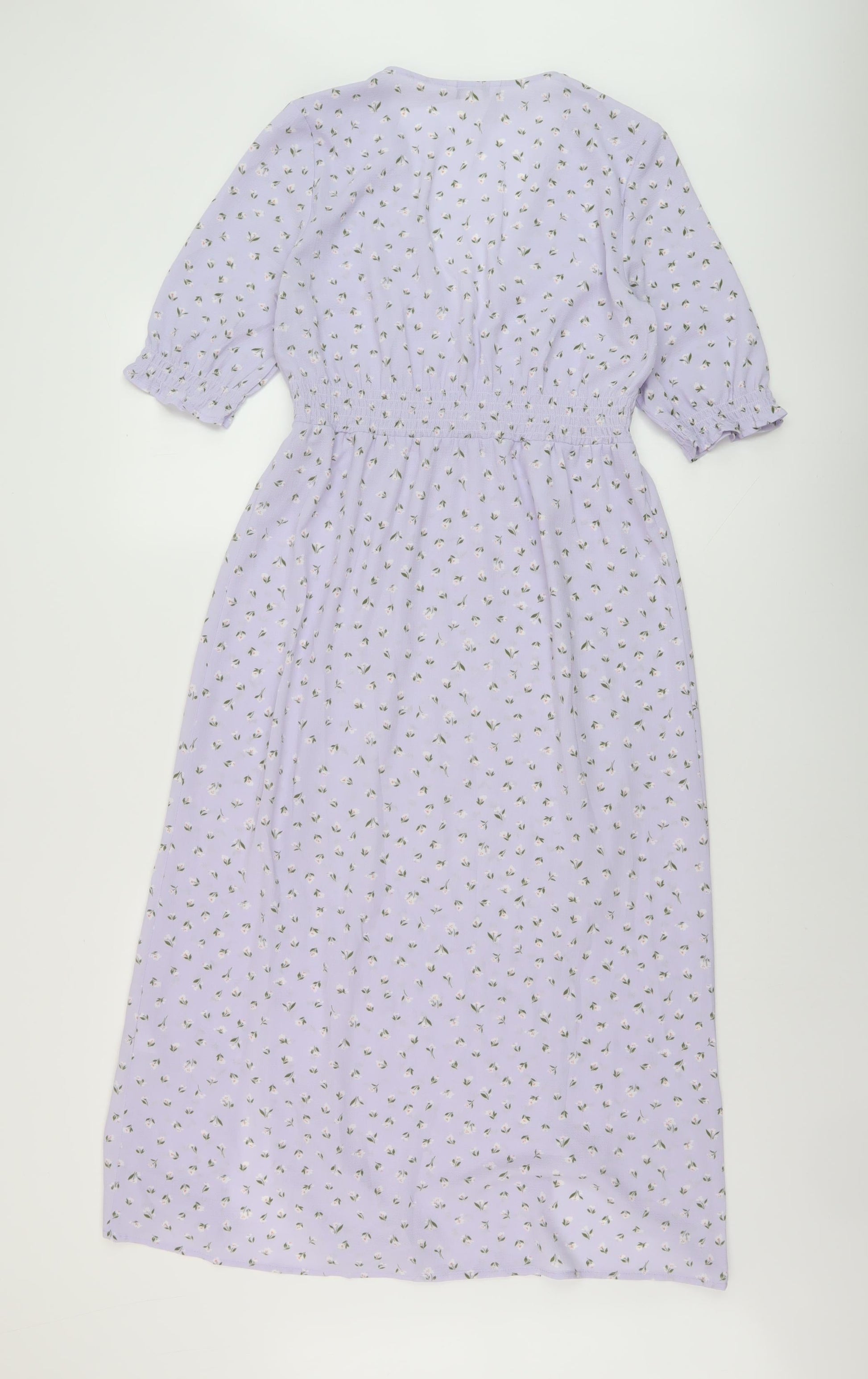 Monki Womens Purple Floral Polyester A-Line Size 6 V-Neck Pullover