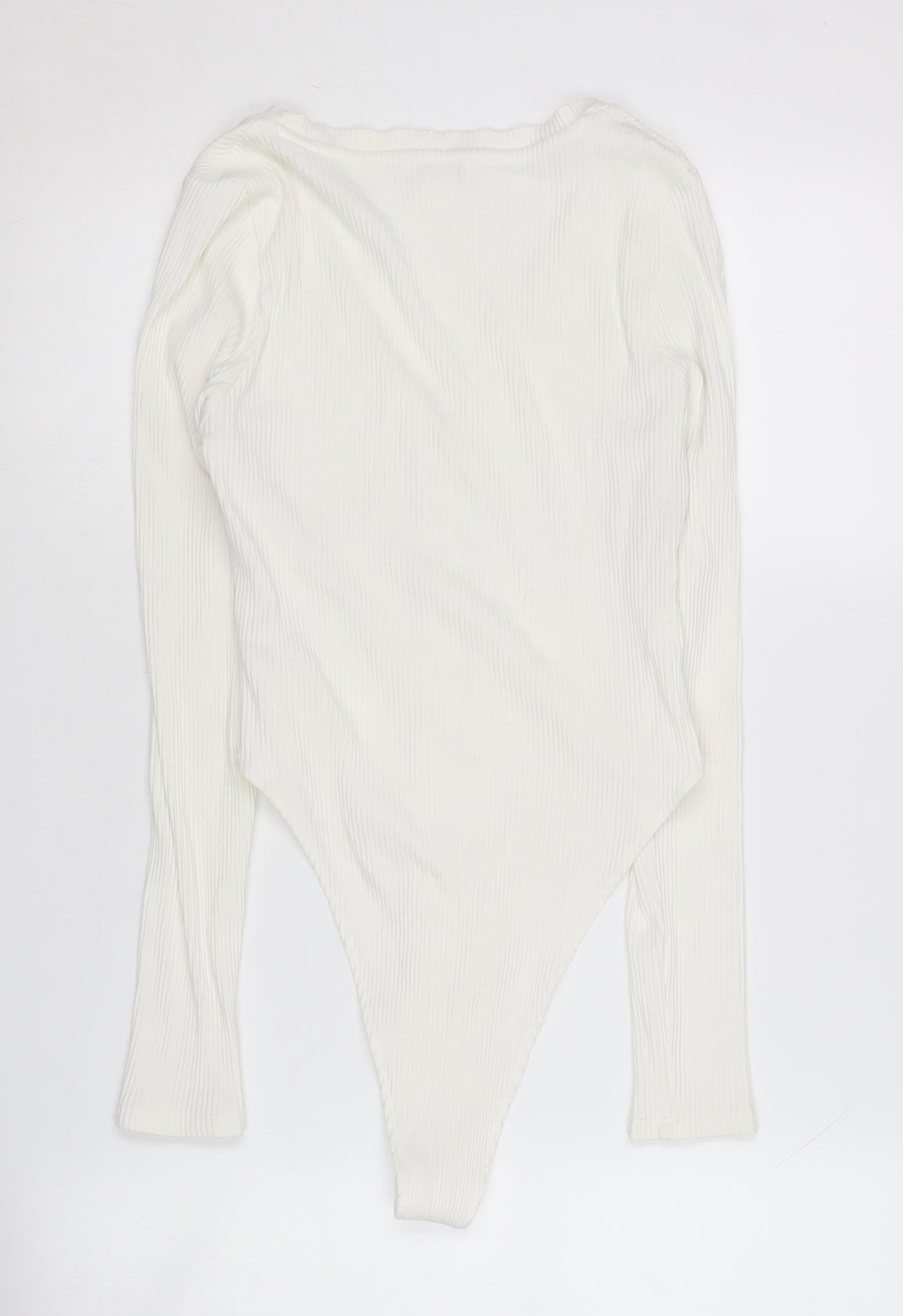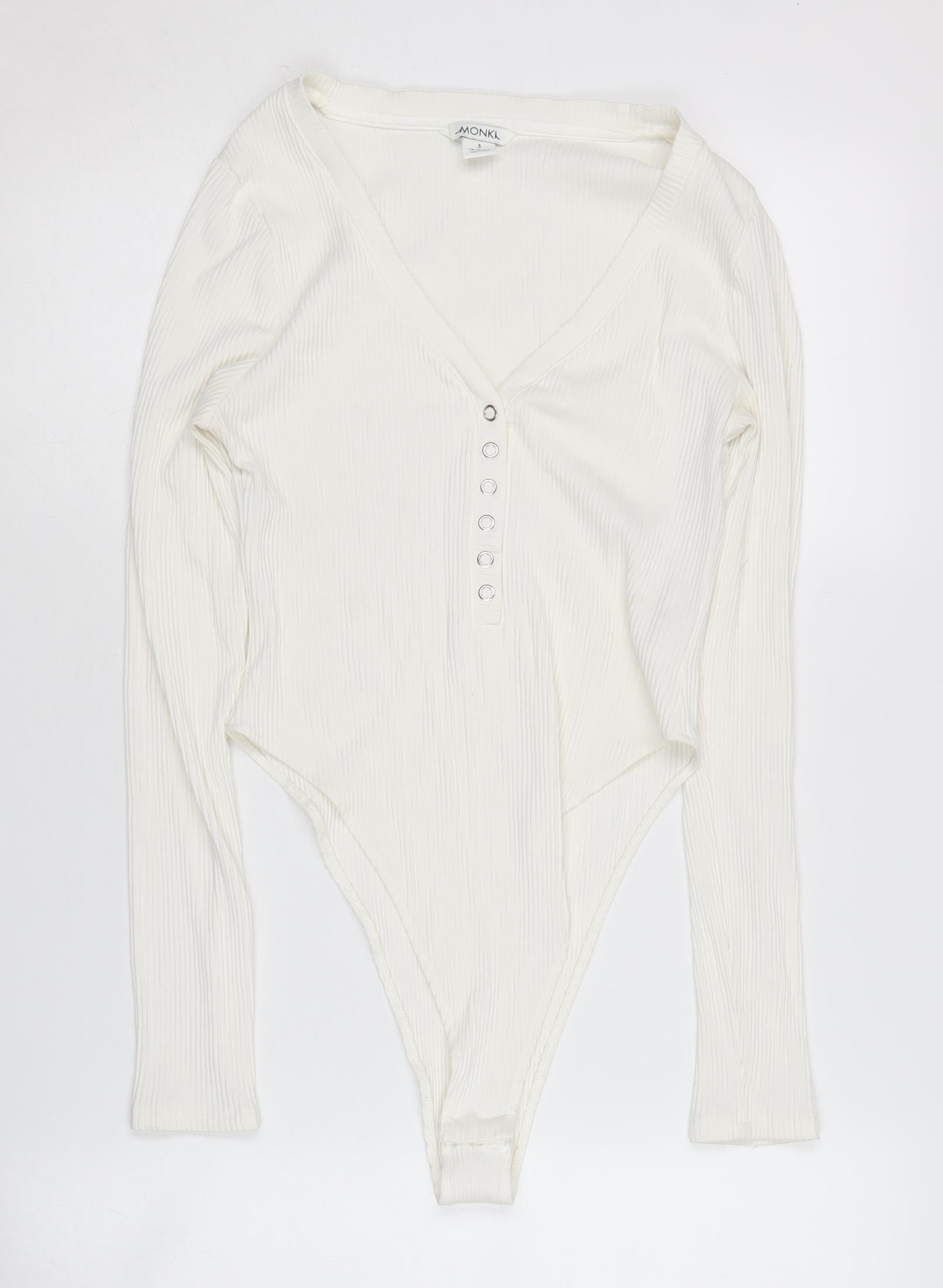 Monki Women's White Long Sleeve Bodysuit, Size S, Casual