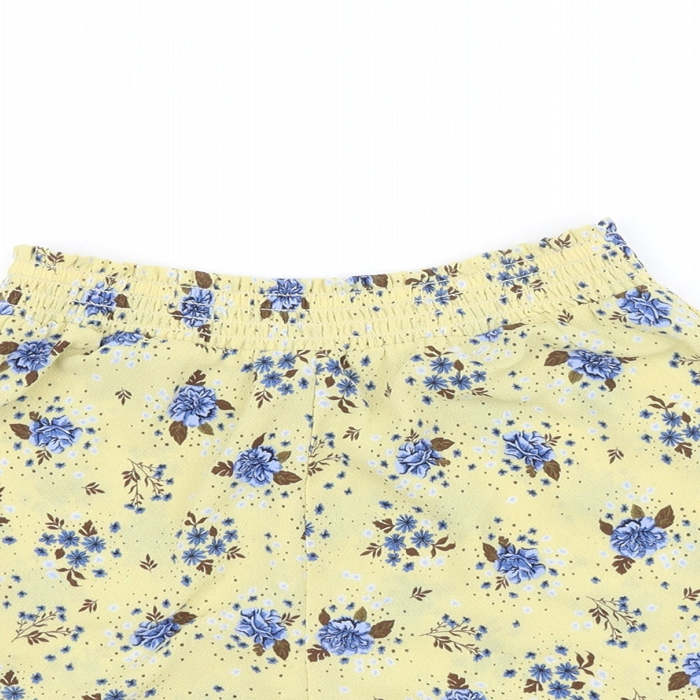 Monki Womens Yellow Geometric Polyester Basic Shorts Size S Regular Pull On