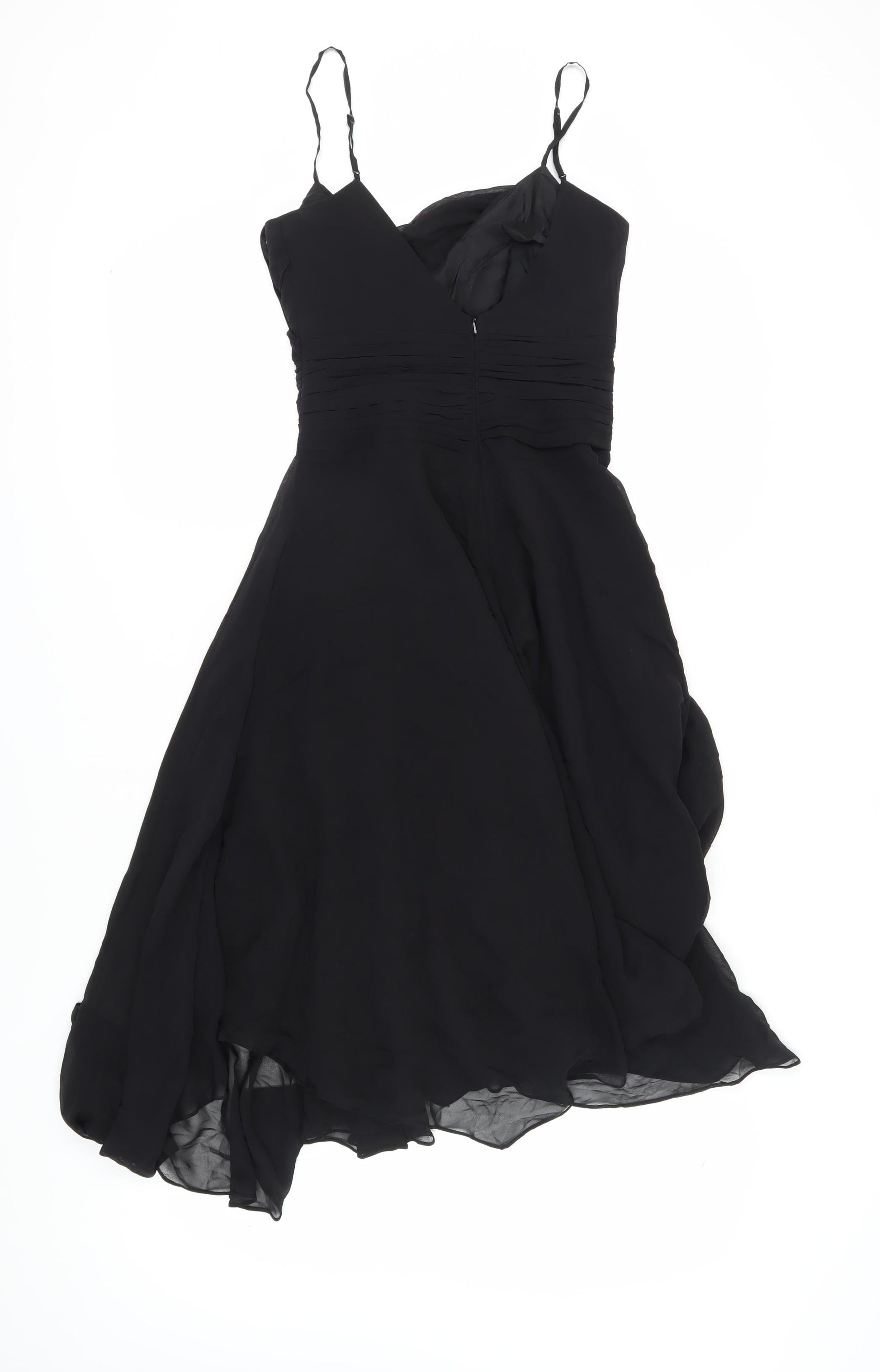 Monsoon Black Silk Asymmetric Party Dress, Size 8