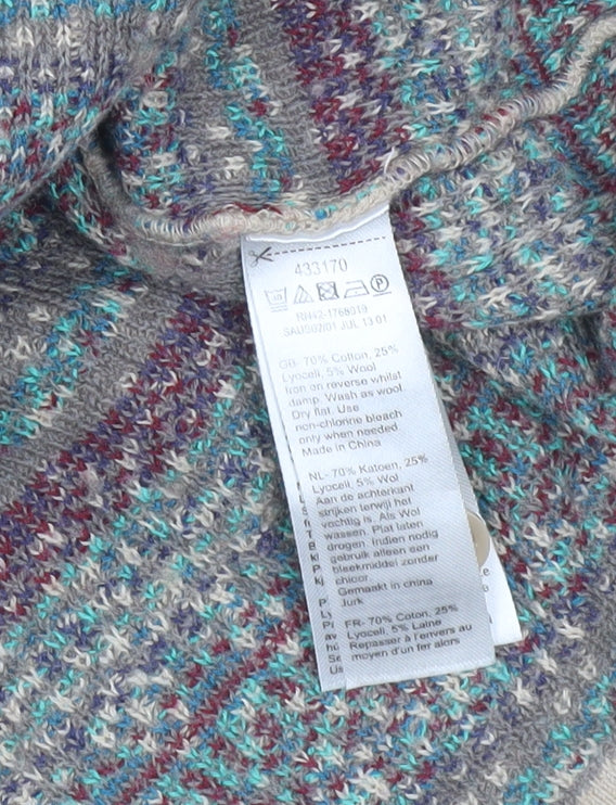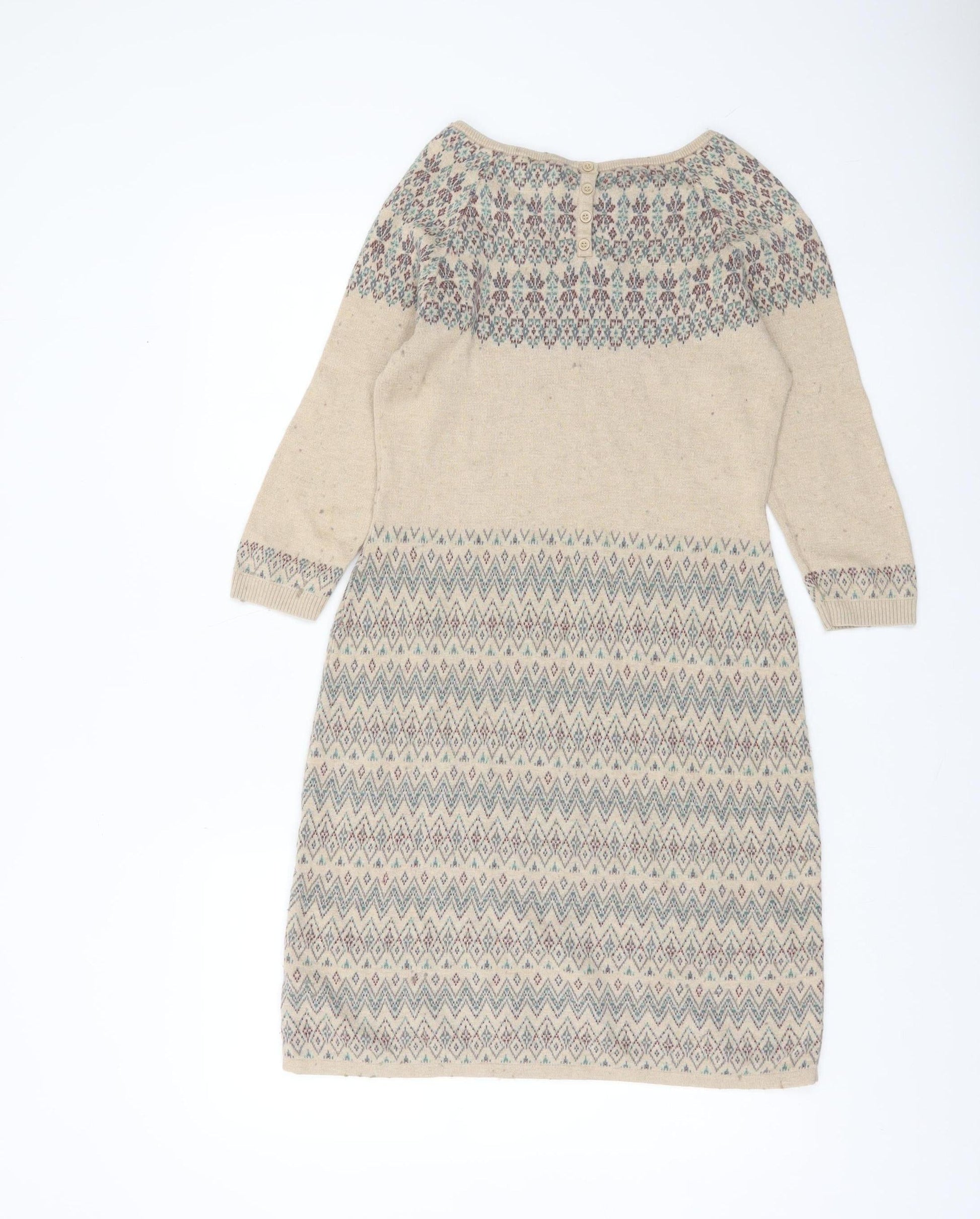 Monsoon Women Beige Knit Shift Dress S Geometric Pattern 3/4 Sleeve