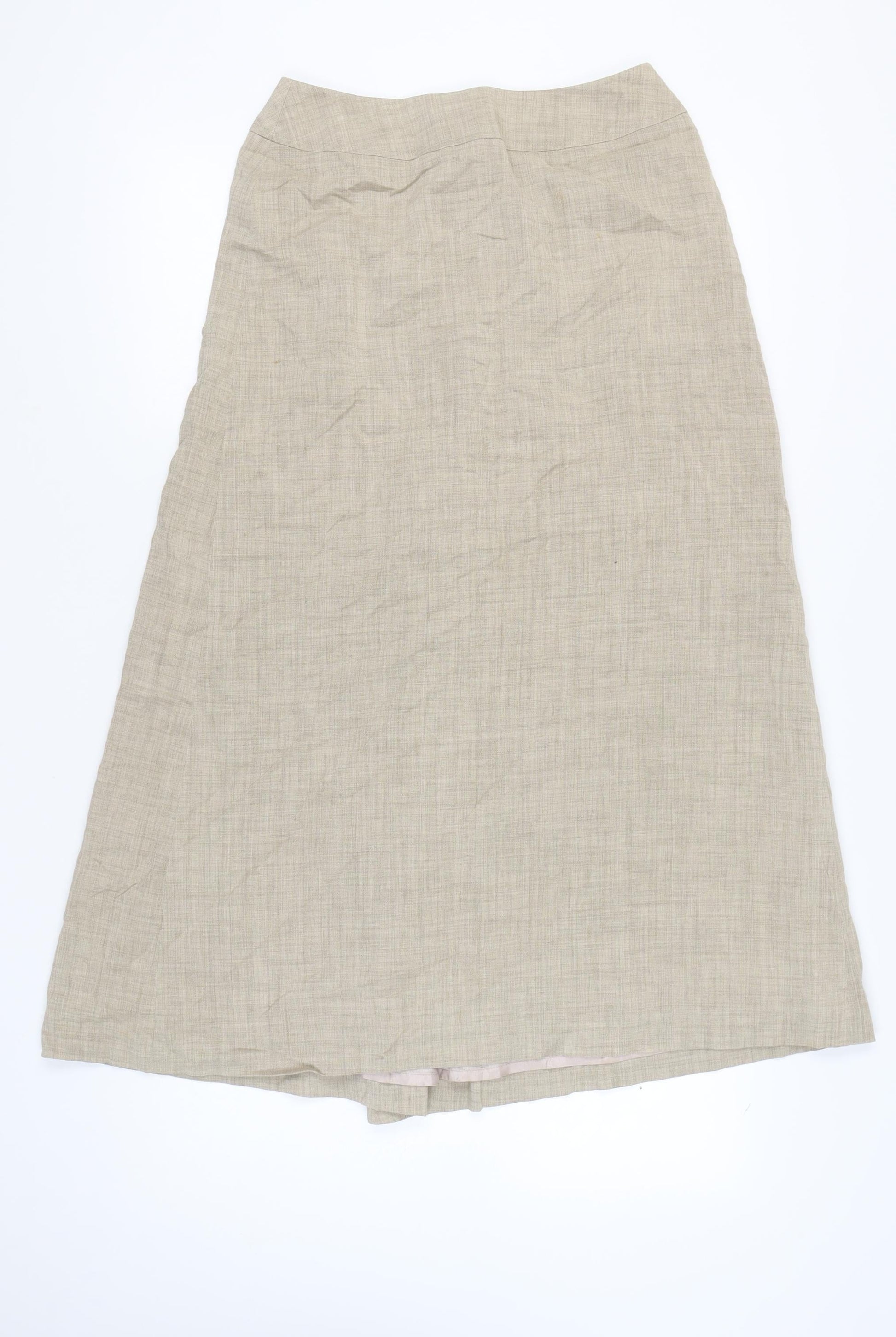 Monsoon Women’s Beige A-Line Midi Skirt Size 12 Linen Blend