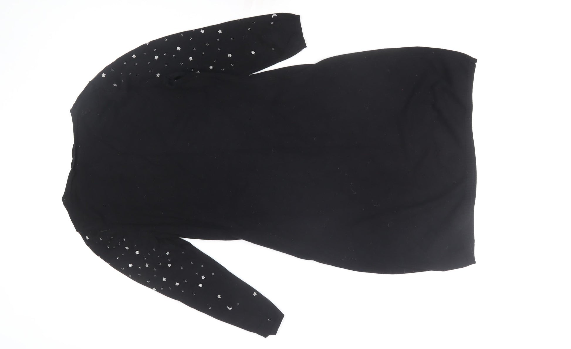 Monsoon Women’s Black Shift Dress S Long Sleeve Knit Star Beaded