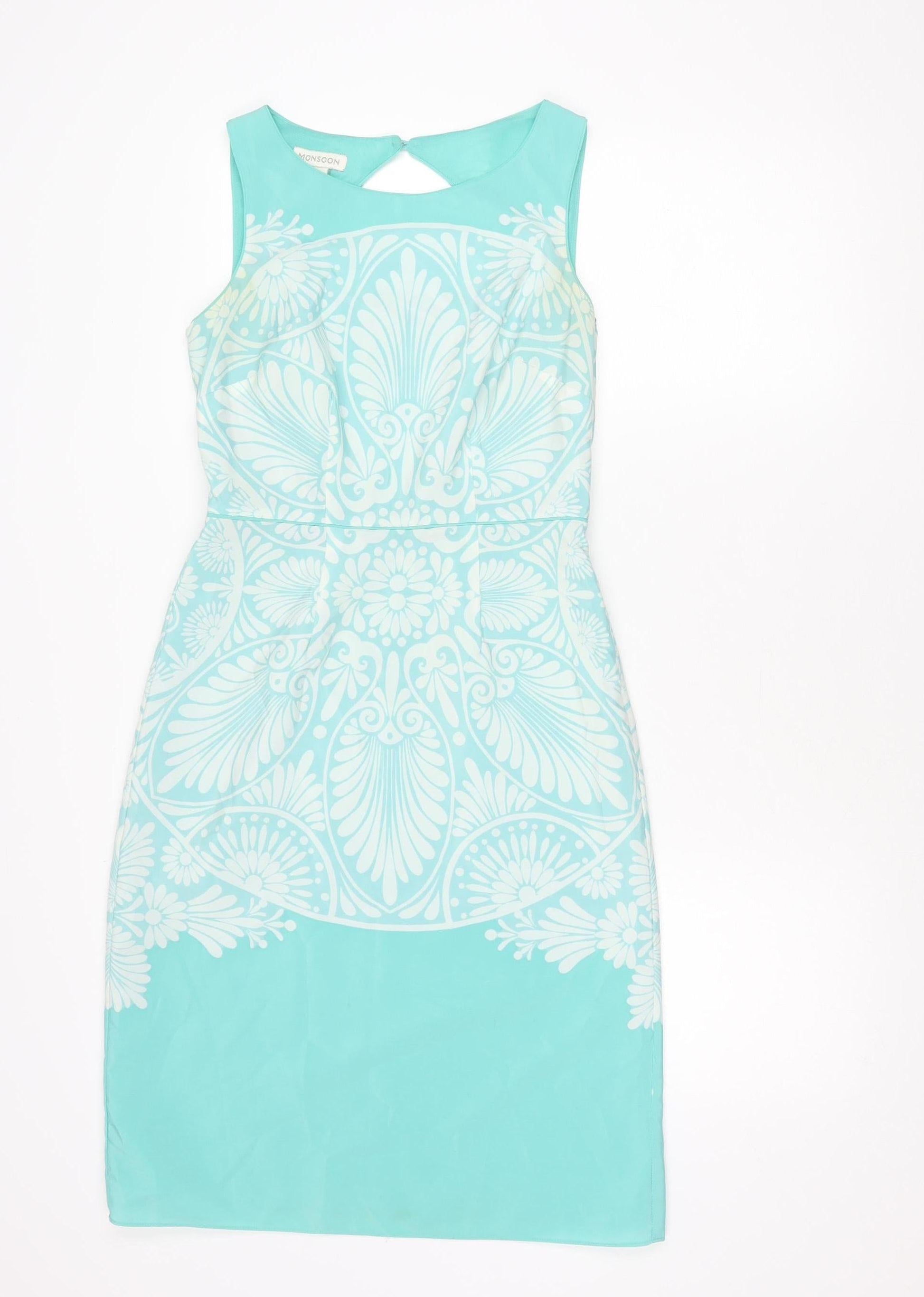 Monsoon Women’s Blue Geometric Print Sheath Dress Size 8