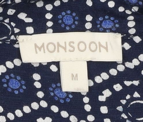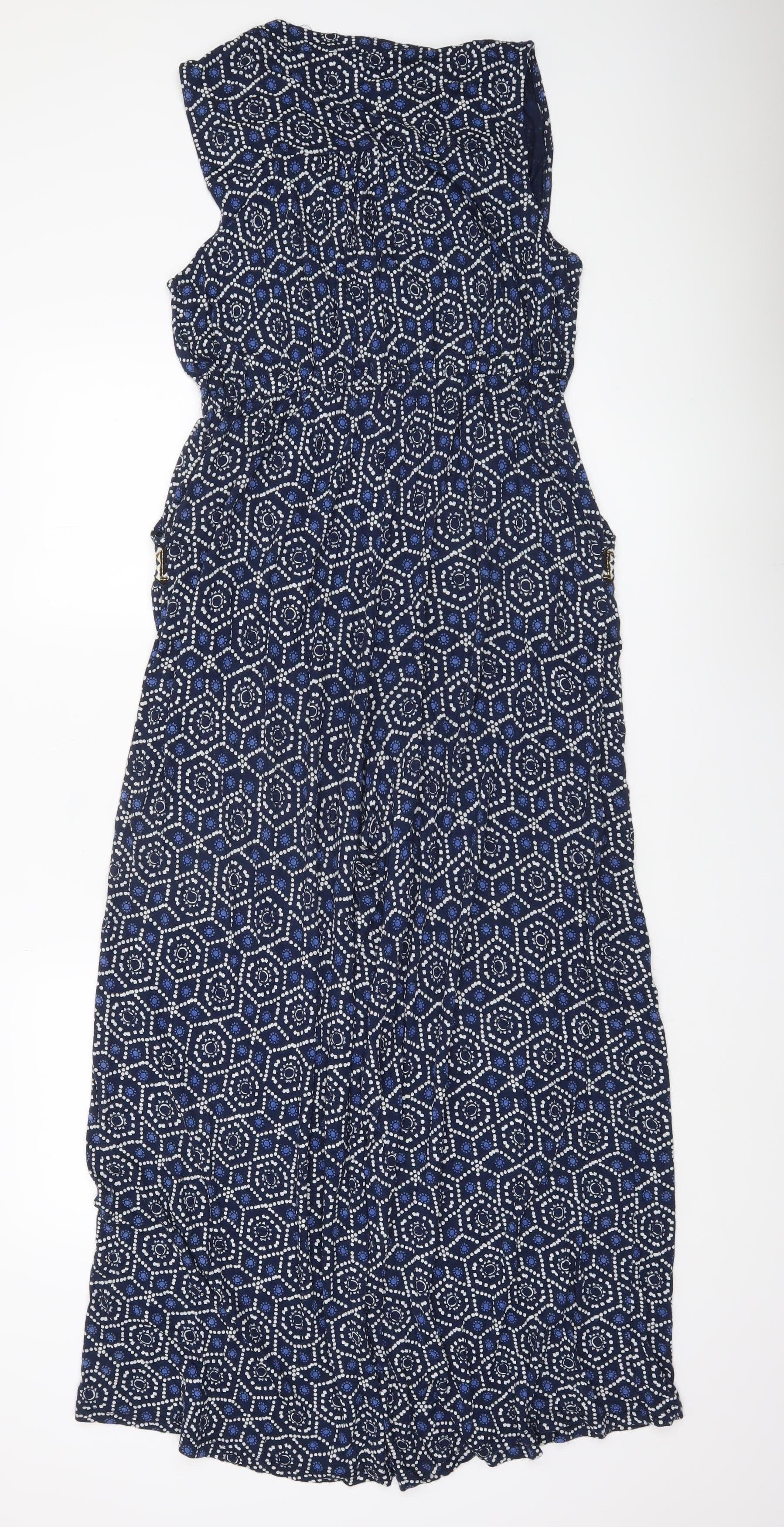 Monsoon Women’s Blue Geometric Sleeveless Wide-Leg Jumpsuit Size M