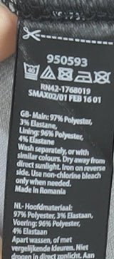 - Material Breakdown: 97% Polyester 3% Elastane