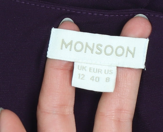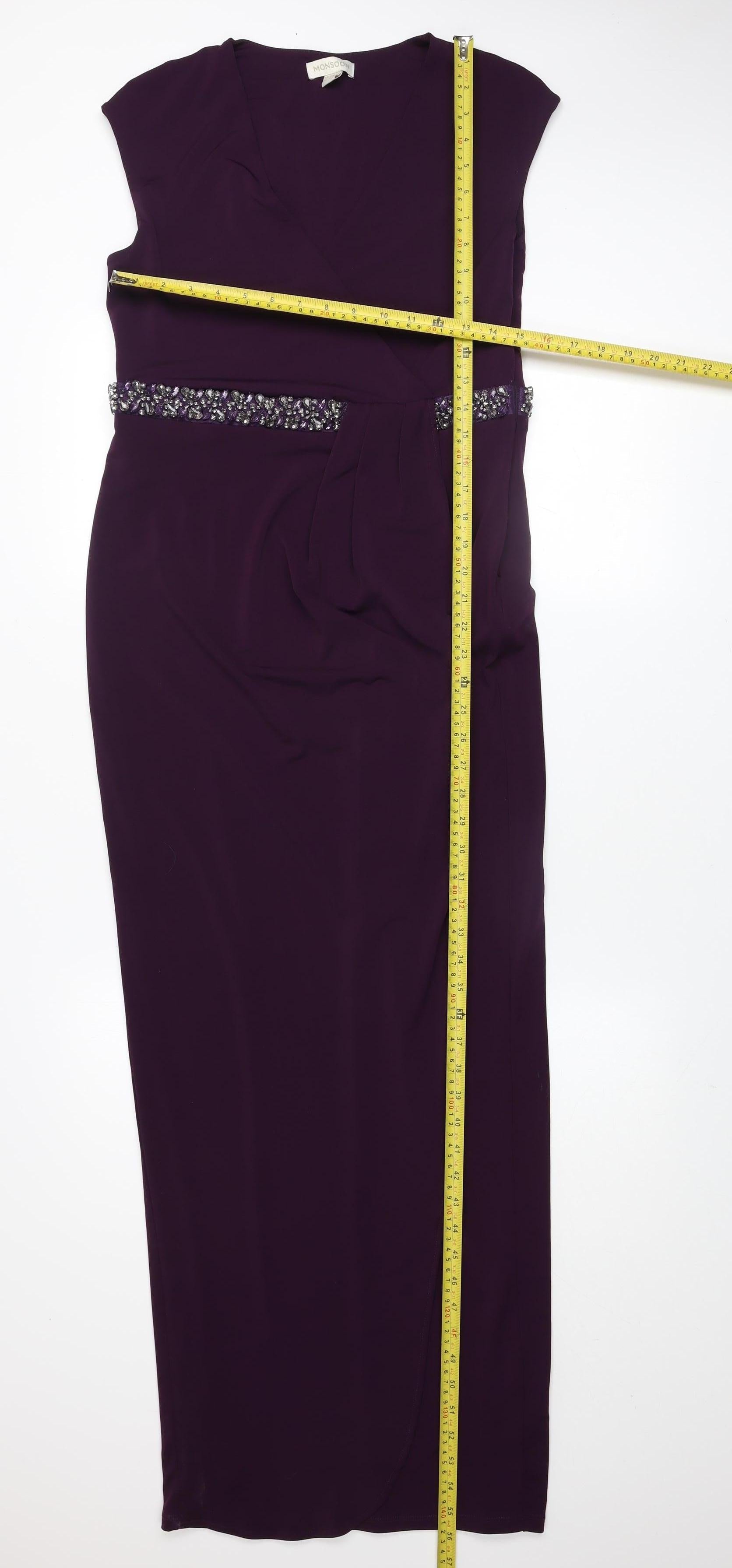 Monsoon Women’s Purple Beaded Long Bodycon Dress Size 12