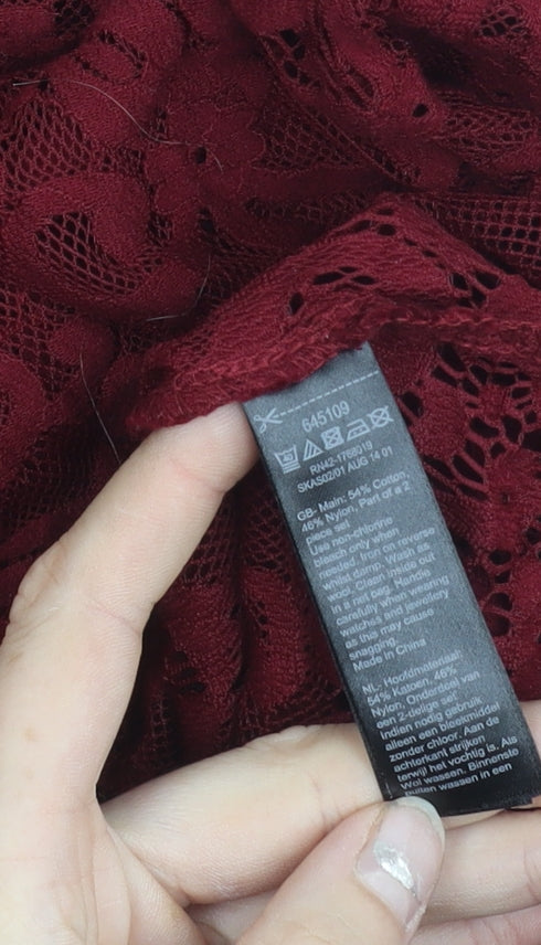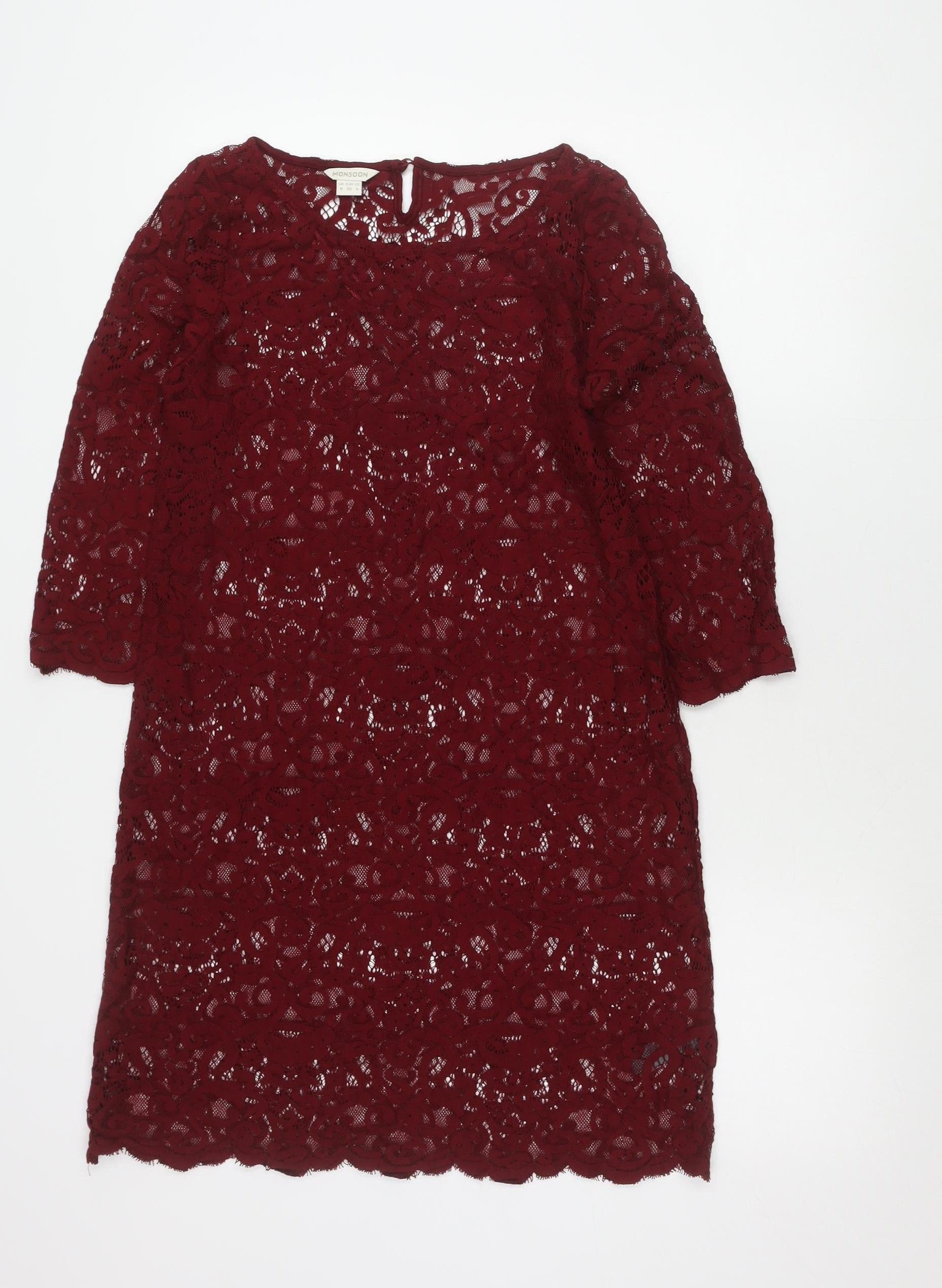 Monsoon Women’s Red Lace Shift Dress UK 8 Knee Length 3/4 Sleeve