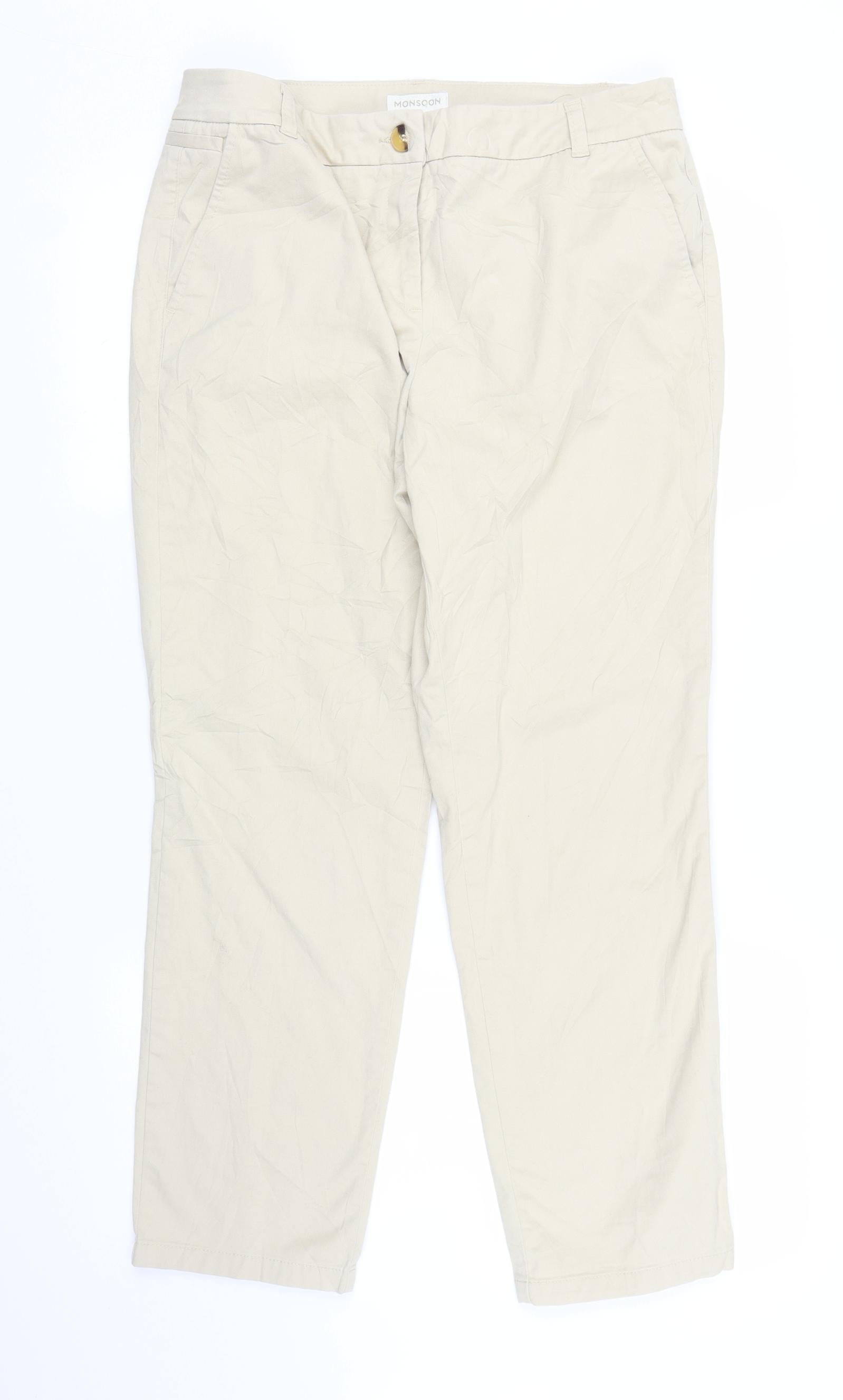 Monsoon Womens Beige Carpenter Trousers Size 14 L26 in