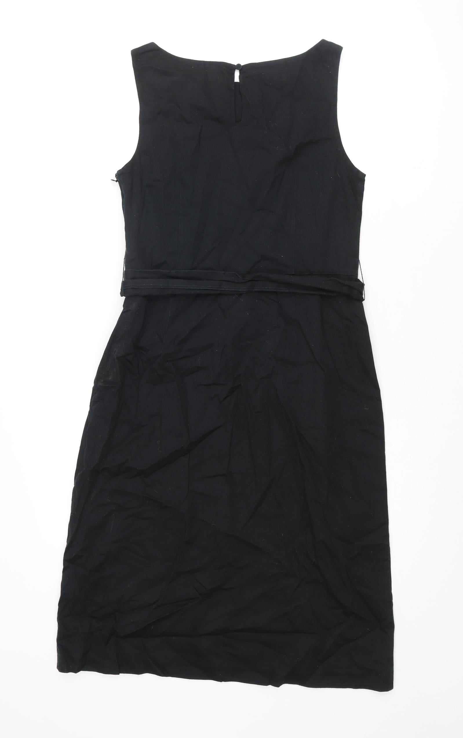 Monsoon Womens Black Cotton Pencil Dress Size 10 Round Neck Zip - Floral Embroidery Belted